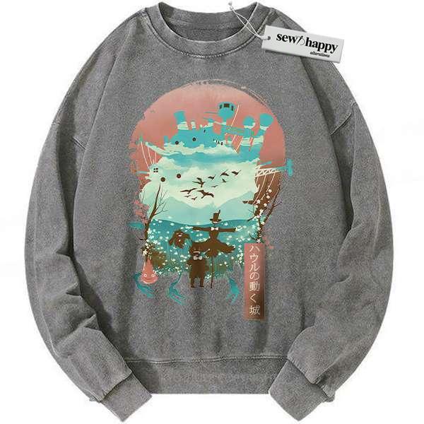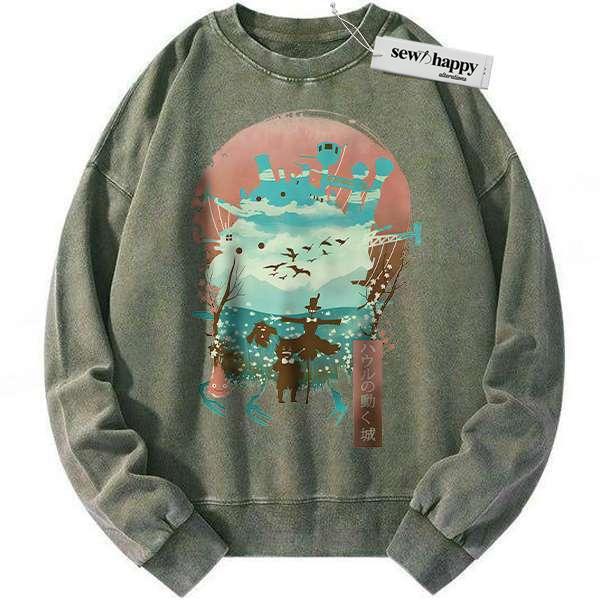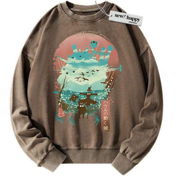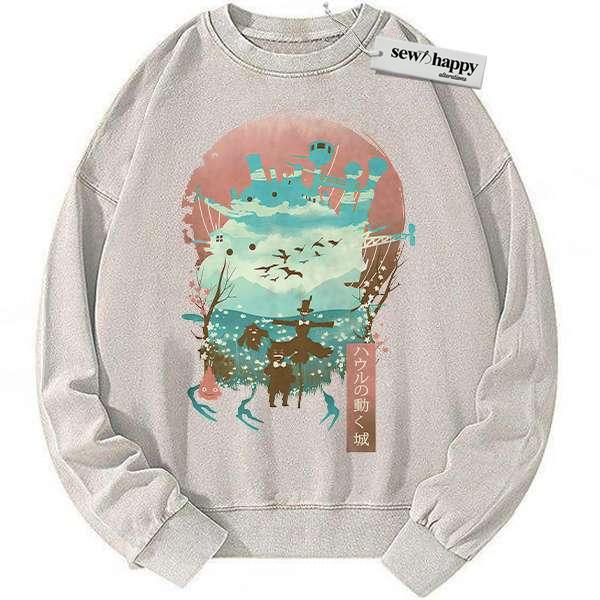 Wash Sweatshirt Howl’s Moving Castle Sweatshirt, Studio Ghibli Sweatshirt, Anime Sweatshirt, Vintage Sweater