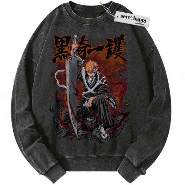 Wash Sweatshirt Ichigo Kurosaki Sweatshirt, Bleach Sweatshirt, Anime Sweatshirt, Vintage Sweatshirt