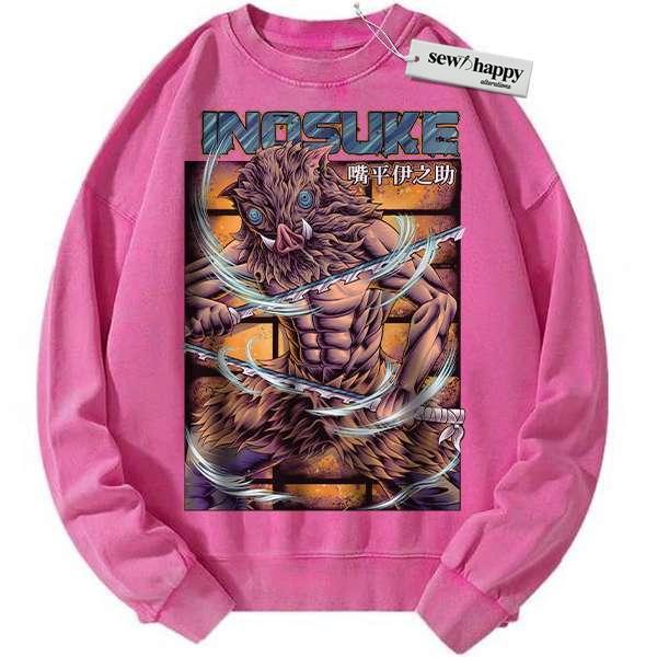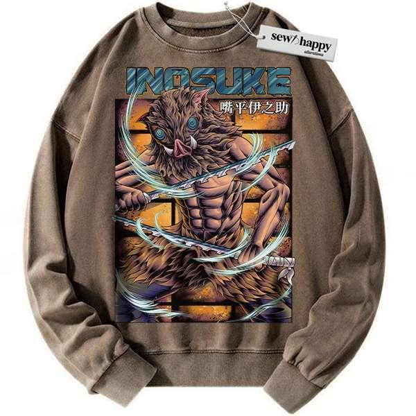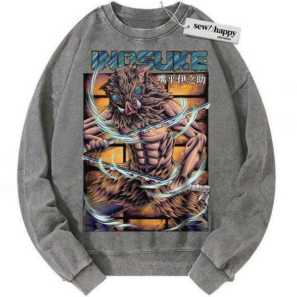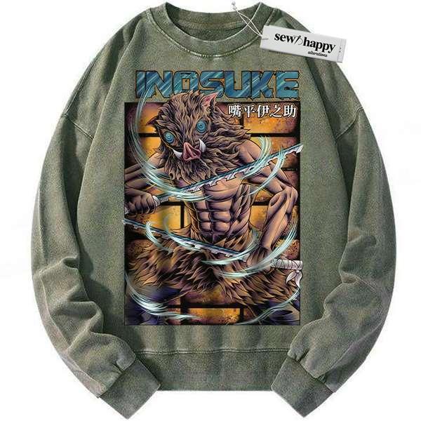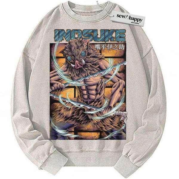 Wash Sweatshirt Inosuke Hashibira Sweatshirt, Demon Slayer Sweatshirt, Anime Sweatshirt, Vintage Sweater