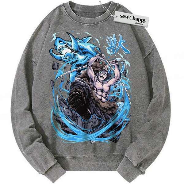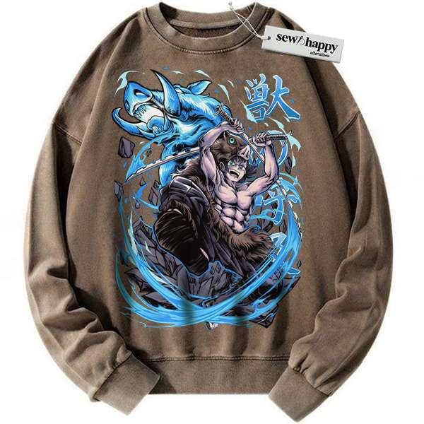 Wash Sweatshirt Inosuke Hashibira Sweatshirt, Demon Slayer Sweatshirt, Anime Sweatshirt, Vintage Sweatshirt