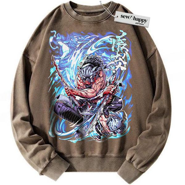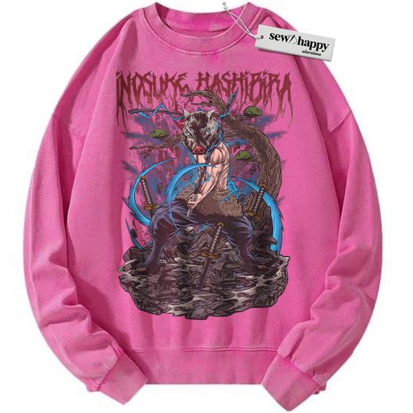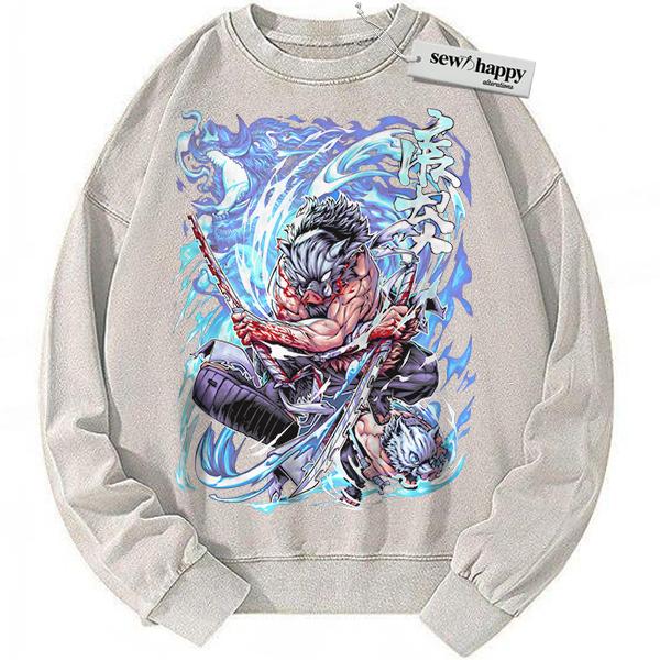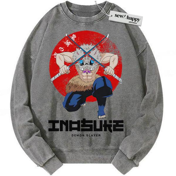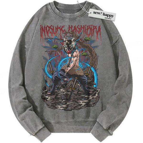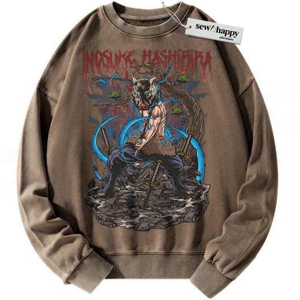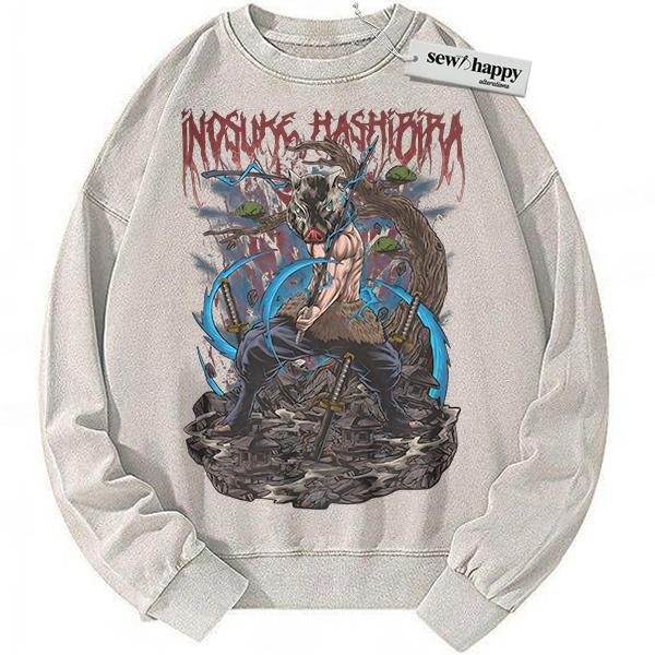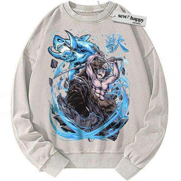 Wash Sweatshirt Inosuke Hashibira Sweatshirt, Demon Slayer Sweatshirt, Anime Sweatshirt, Vintage Sweatshirt