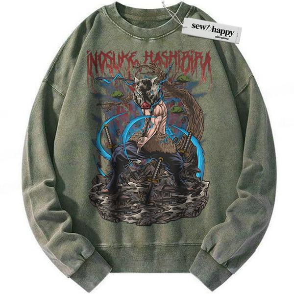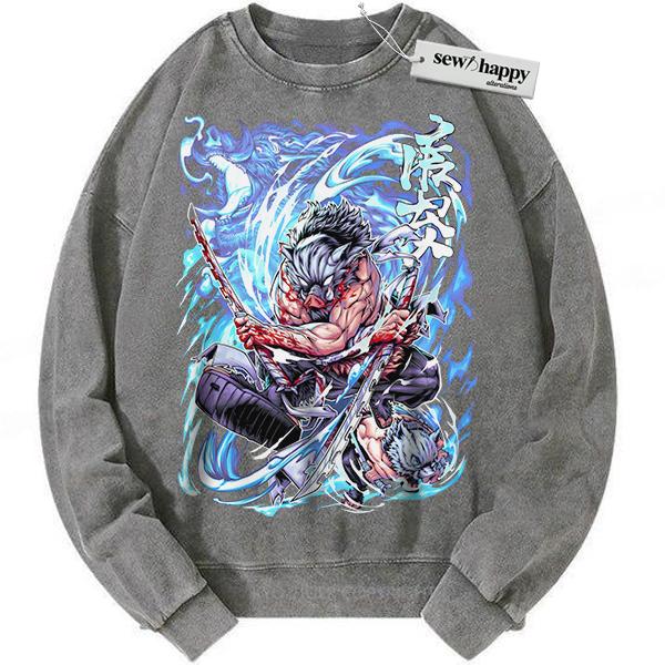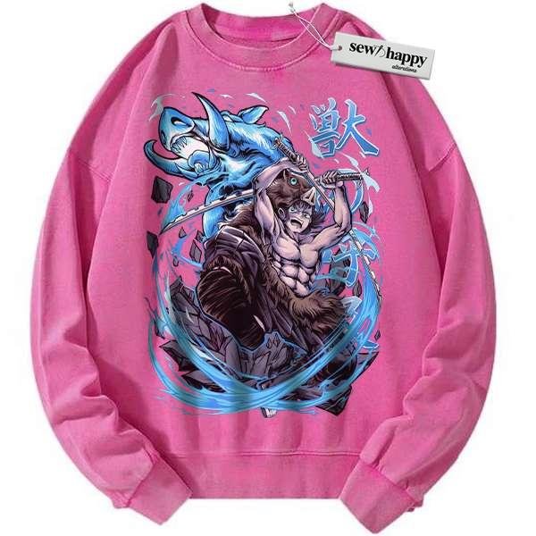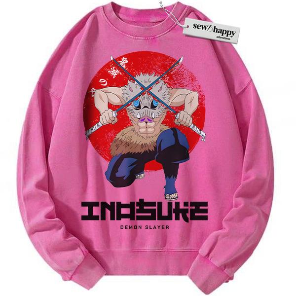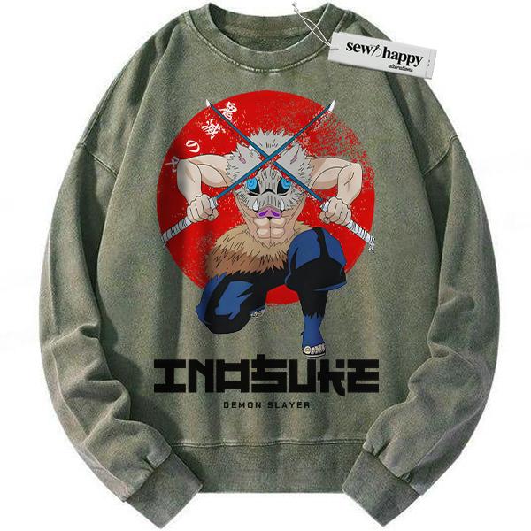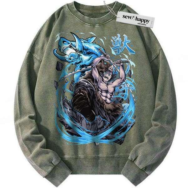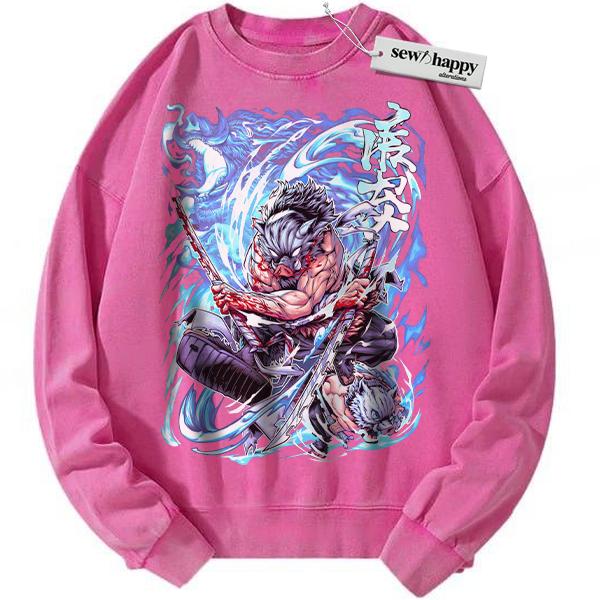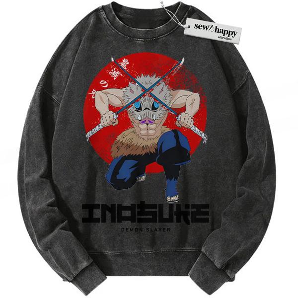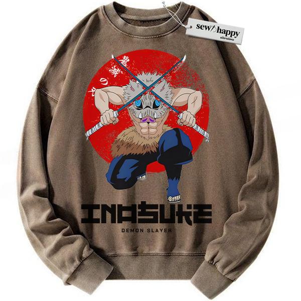 Wash Sweatshirt Inosuke Hashibira Sweatshirt, Demon Slayer Sweatshirt, Anime Sweatshirt, Vintage Sweatshirt