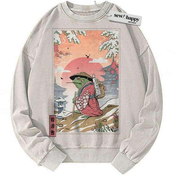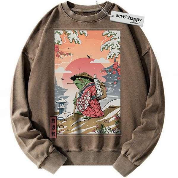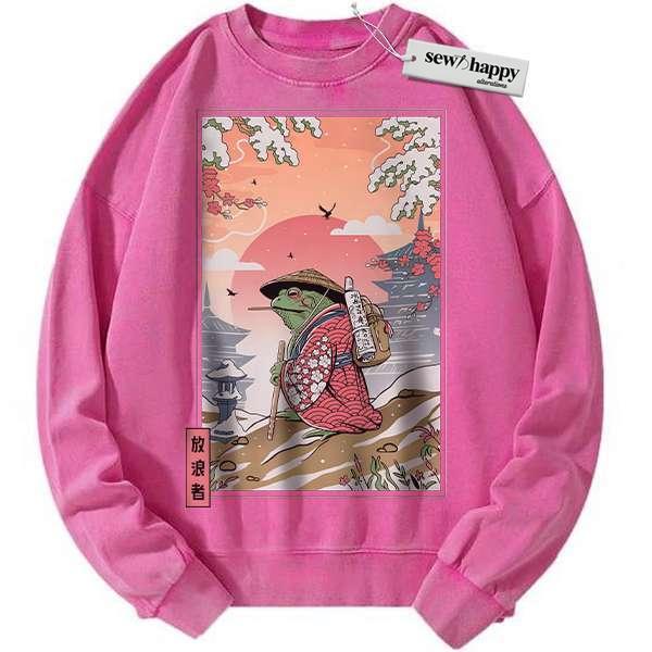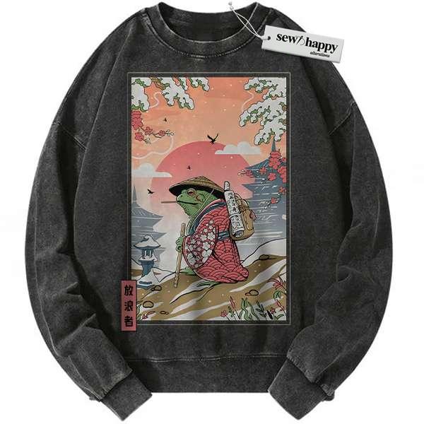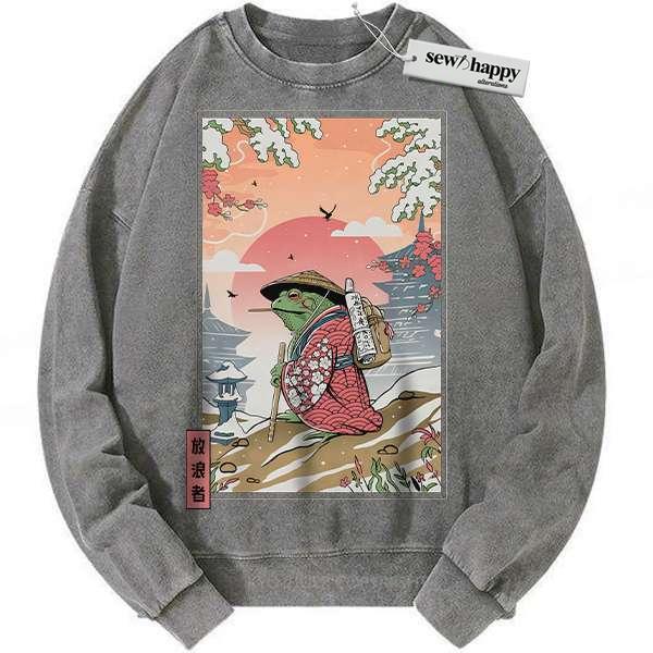 Wash Sweatshirt Japanese Frog Sweatshirt, Animal Sweatshirt, Vintage Sweater