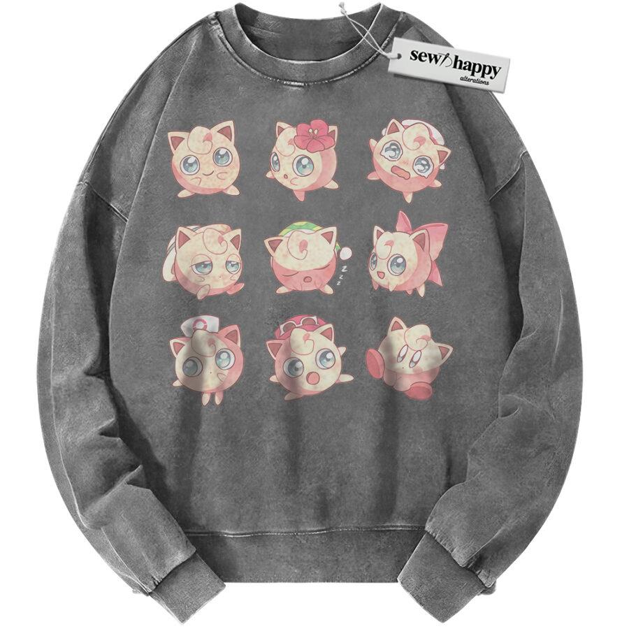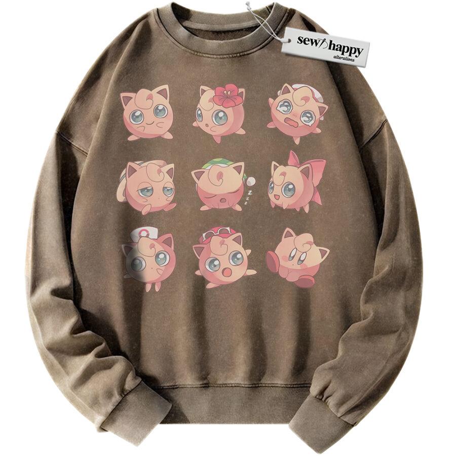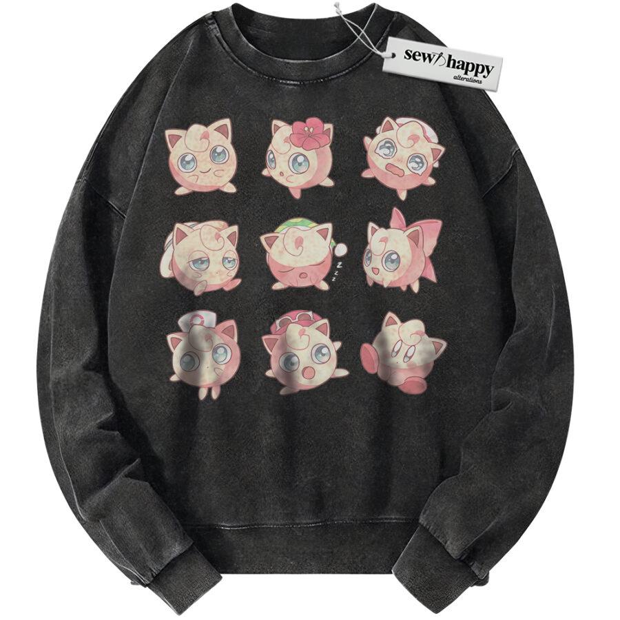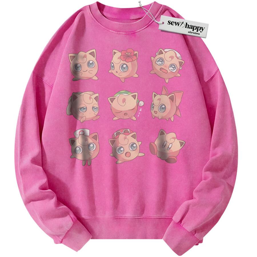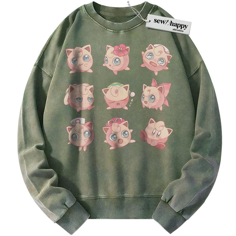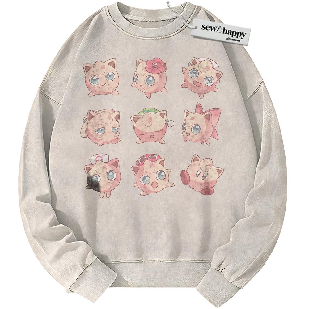 Wash Sweatshirt Jigglypuff Sweatshirt, Pokemon Sweatshirt, PKM Sweatshirt, Anime Sweatshirt, Vintage Sweater