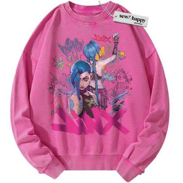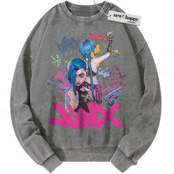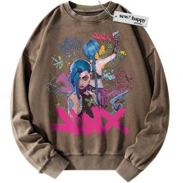 Wash Sweatshirt Jinx Sweatshirt, League of Legends Sweatshirt, LoL Sweatshirt, Game Sweatshirt, Vintage Sweatshirt