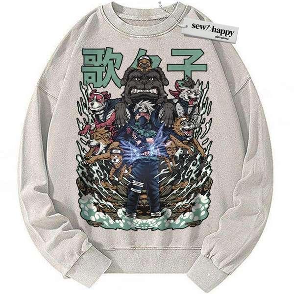 Wash Sweatshirt Kakashi Hatake Sweatshirt, Naruto Sweatshirt, Anime Sweatshirt, Vintage Sweater