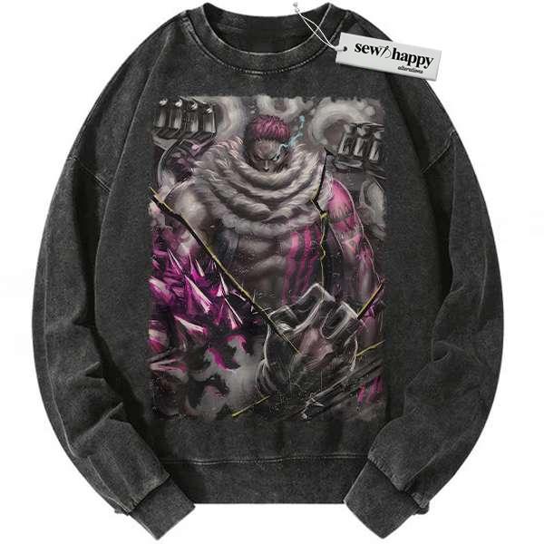 Wash Sweatshirt Katakuri Sweatshirt, One Piece Sweatshirt, Anime Sweatshirt, Vintage Sweater