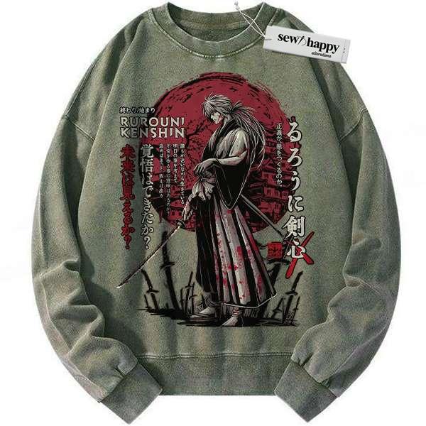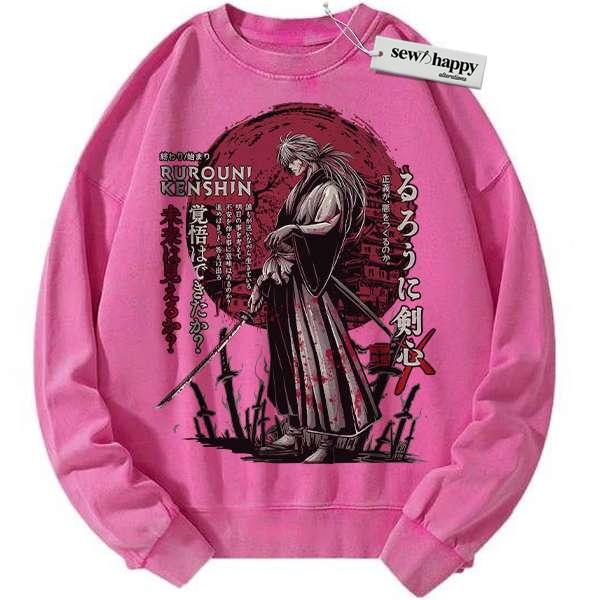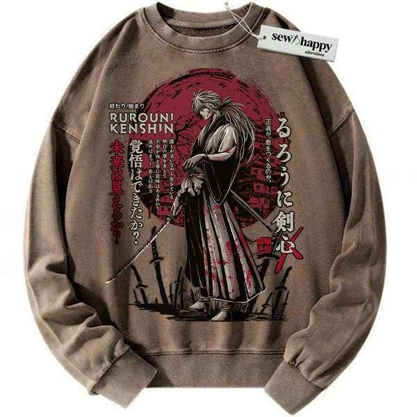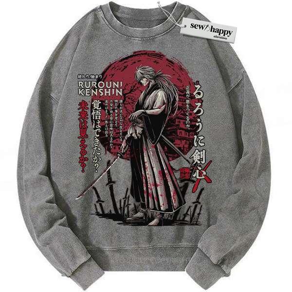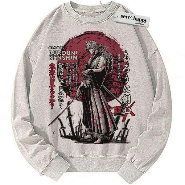 Wash Sweatshirt Kenshin Himura Sweatshirt, Rurouni Kenshin Sweatshirt, Anime Sweatshirt, Vintage Sweater
