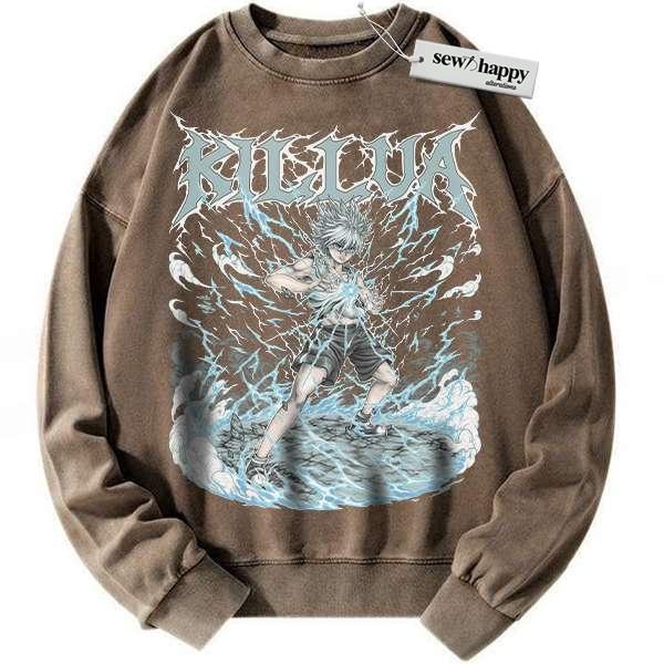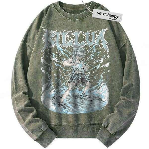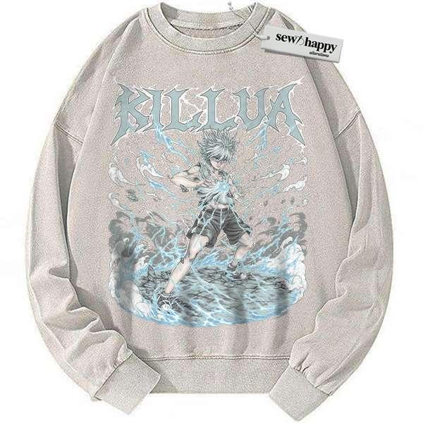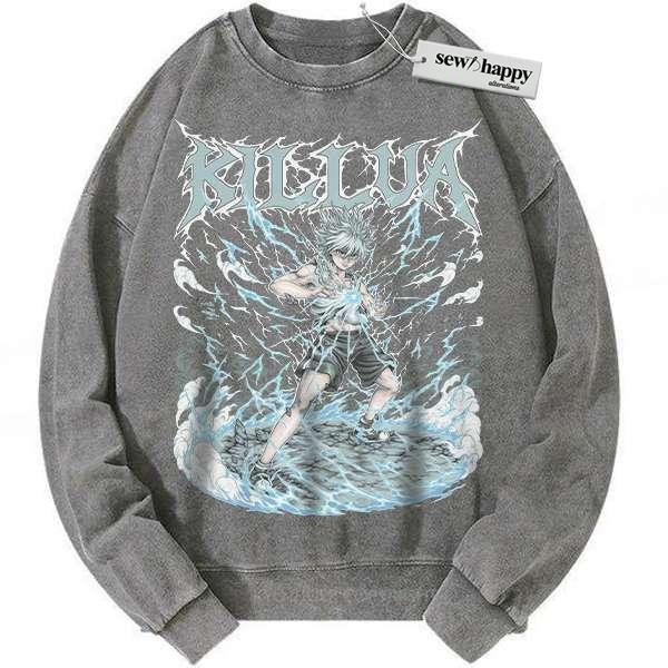 Wash Sweatshirt Killua Zoldyck Sweatshirt, Hunter x Hunter Sweatshirt, HxH Sweatshirt, Anime Sweatshirt, Vintage Sweater