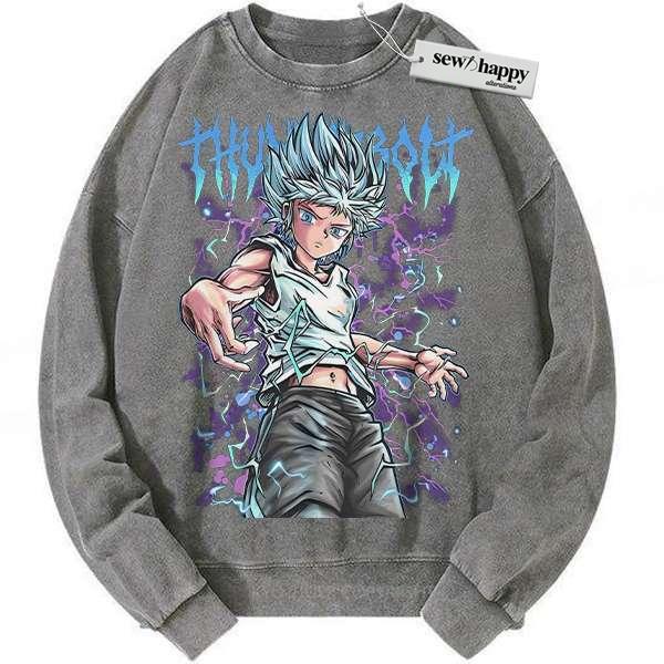 Wash Sweatshirt Killua Zoldyck Sweatshirt, Hunter x Hunter Sweatshirt, HxH Sweatshirt, Anime Sweatshirt, Vintage Sweatshirt