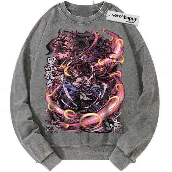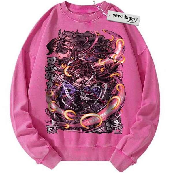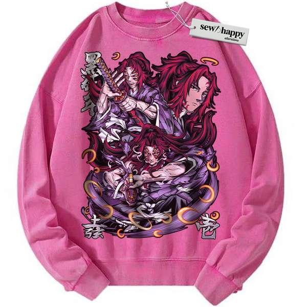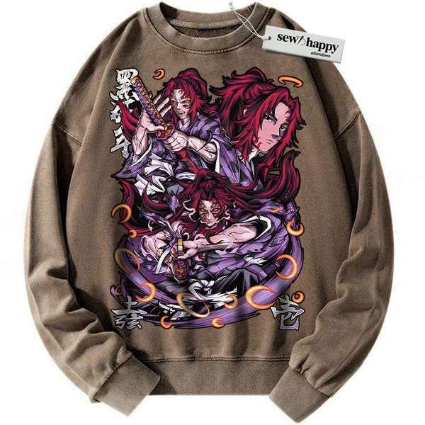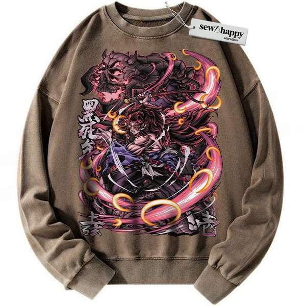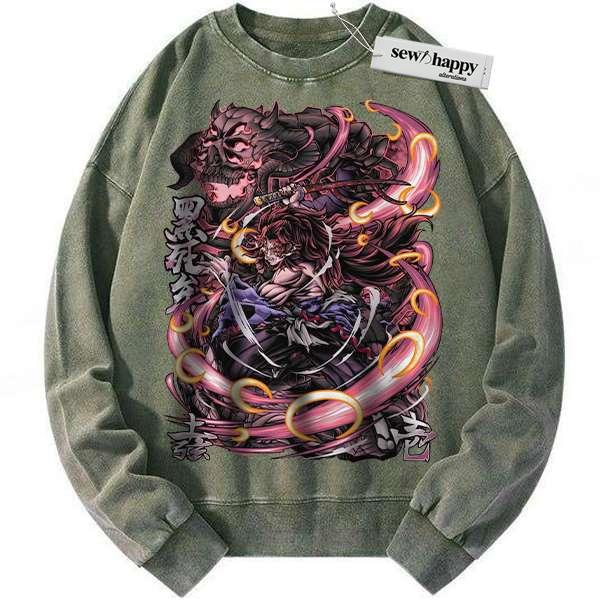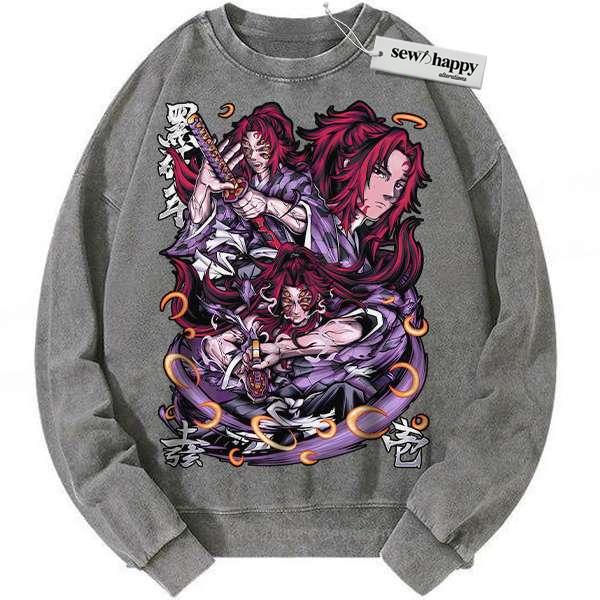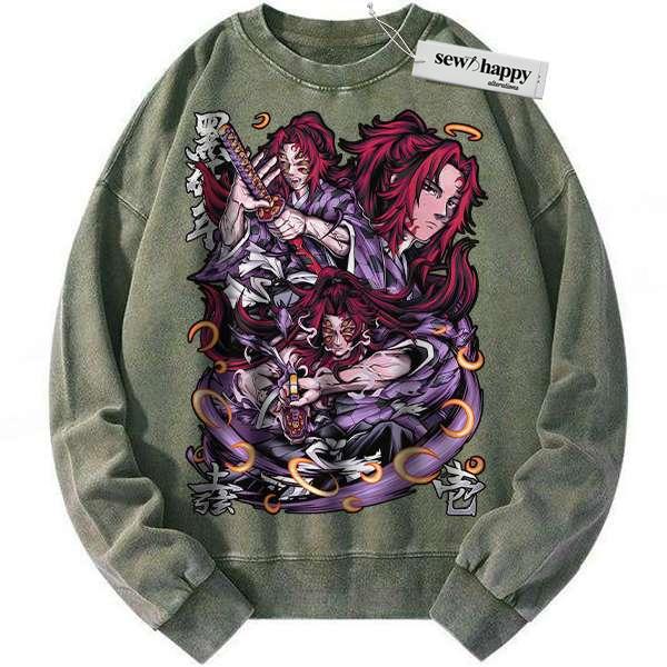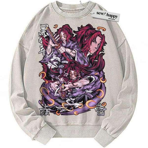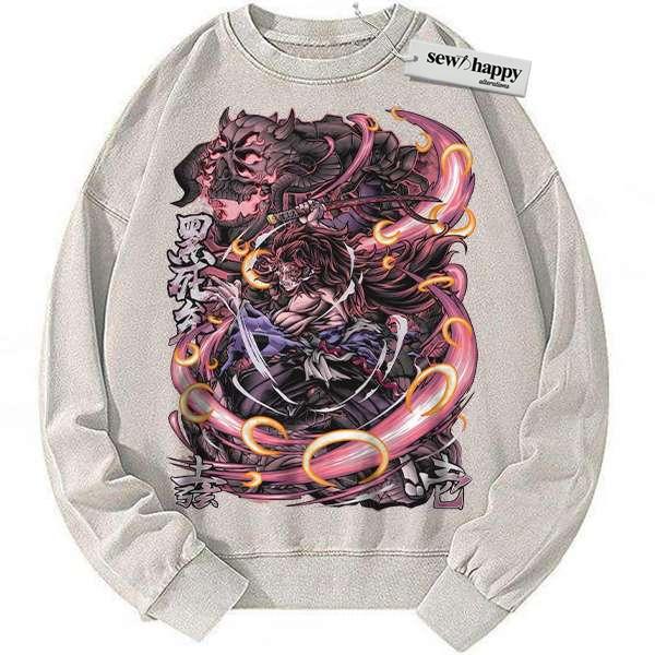 Wash Sweatshirt Kokushibo Sweatshirt, Demon Slayer Sweatshirt, Anime Sweatshirt, Vintage Sweater