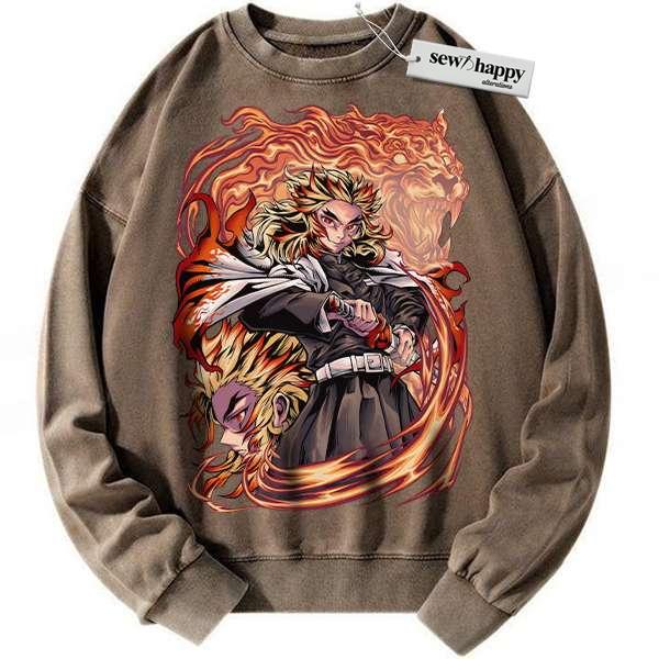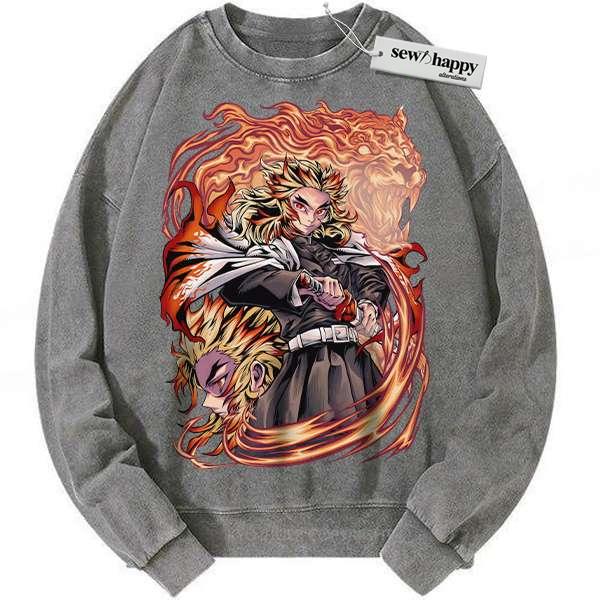 Wash Sweatshirt Kyojuro Rengoku Sweatshirt, Demon Slayer Sweatshirt, Anime Sweatshirt, Vintage Sweatshirt