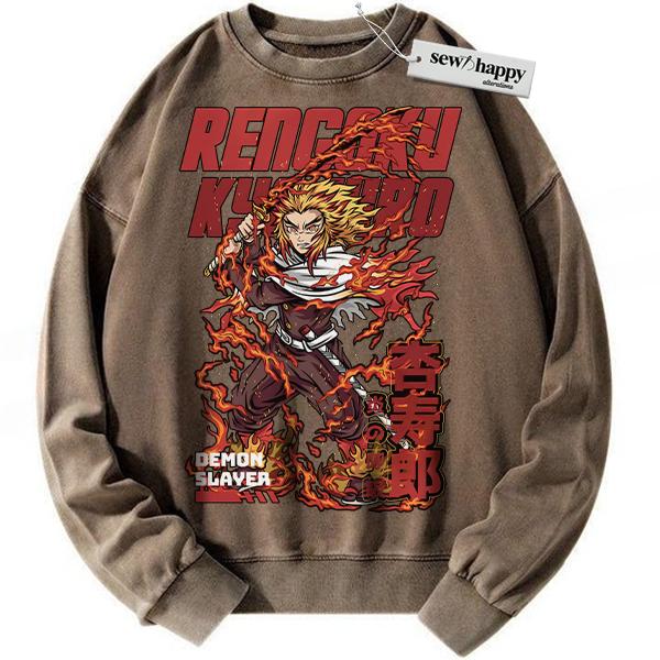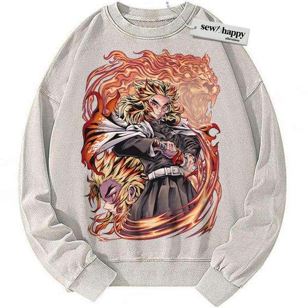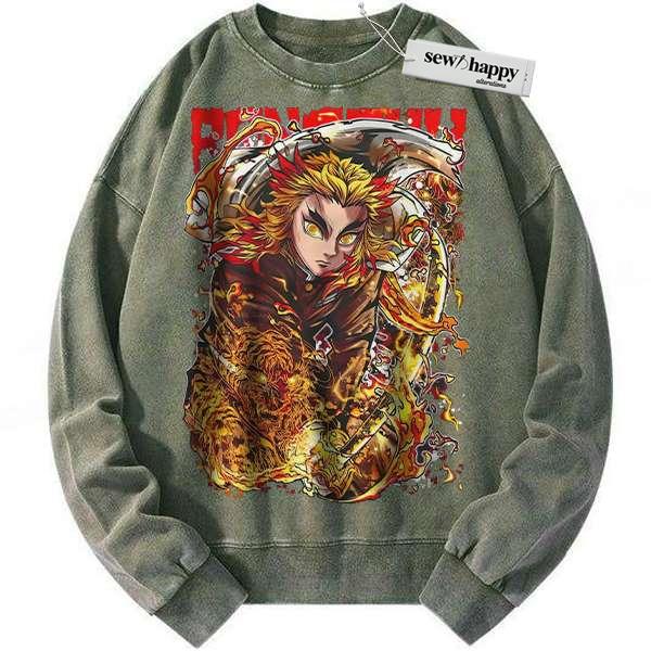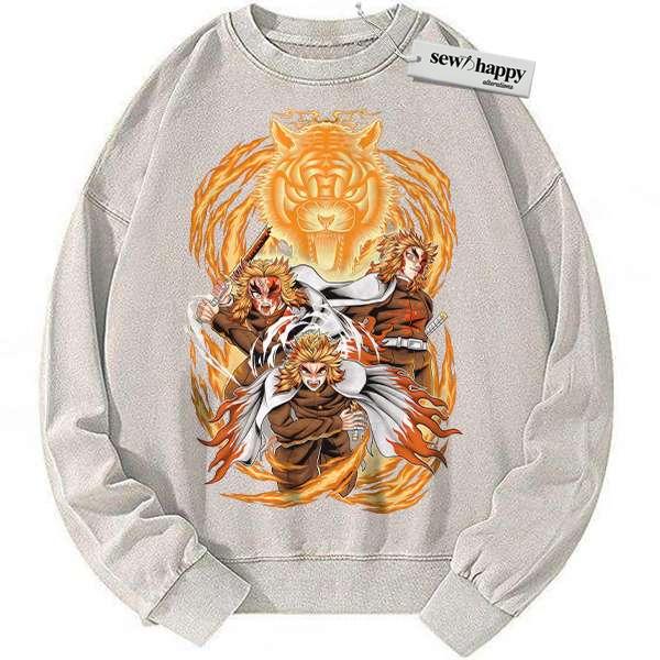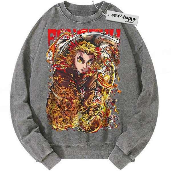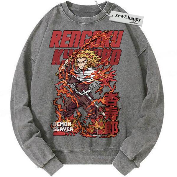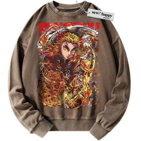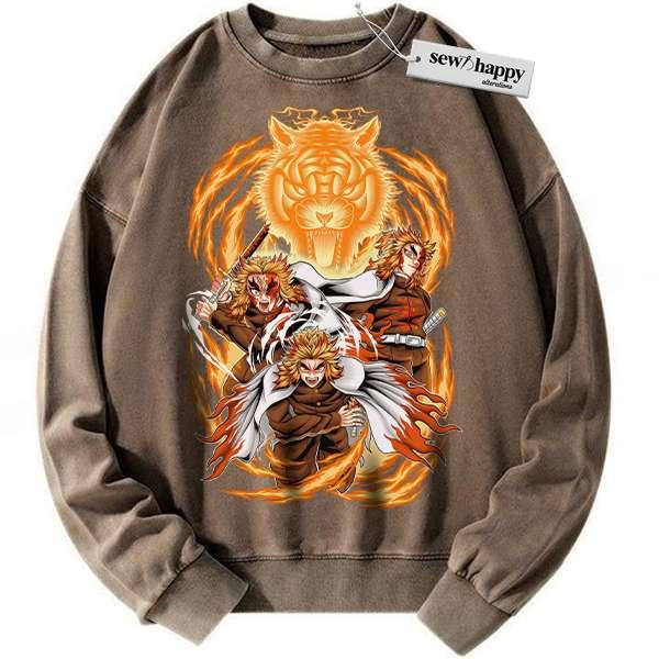 Wash Sweatshirt Kyojuro Rengoku Sweatshirt, Demon Slayer Sweatshirt, Anime Sweatshirt, Vintage Sweatshirt