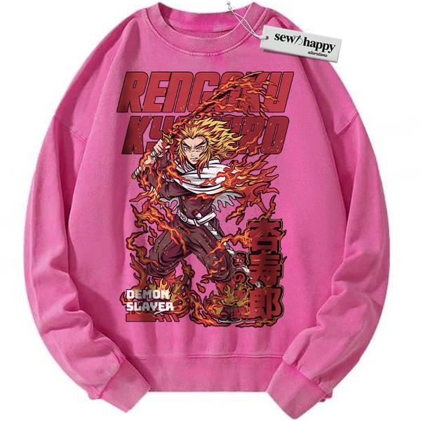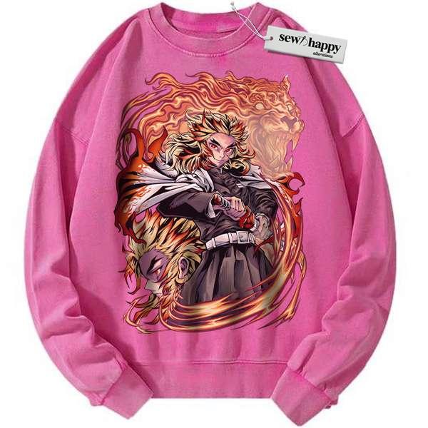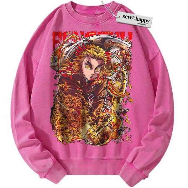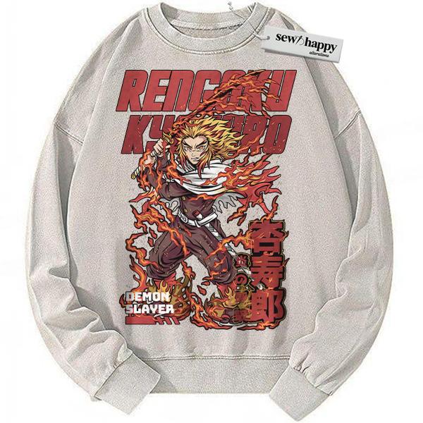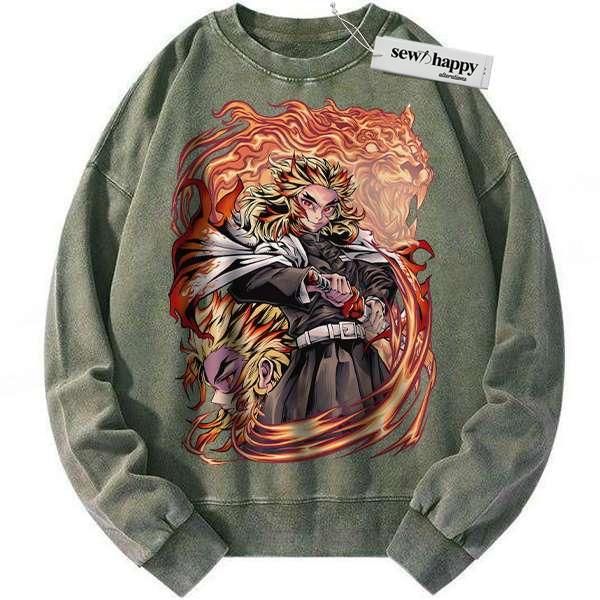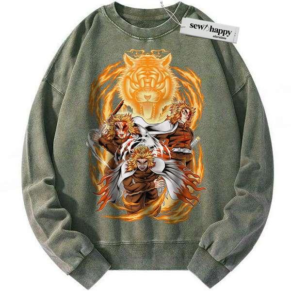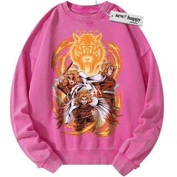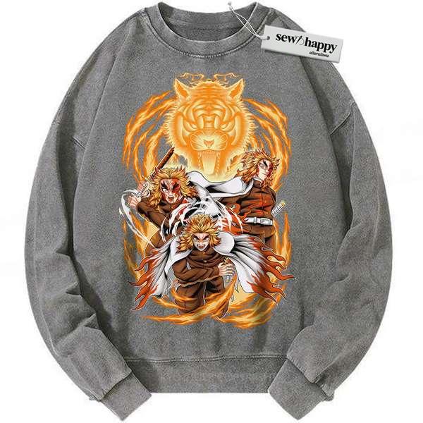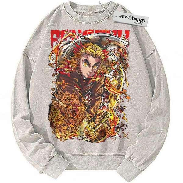 Wash Sweatshirt Kyojuro Rengoku Sweatshirt, Demon Slayer Sweatshirt, Anime Sweatshirt, Vintage Sweatshirt