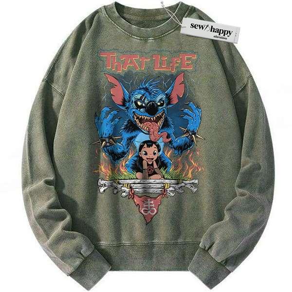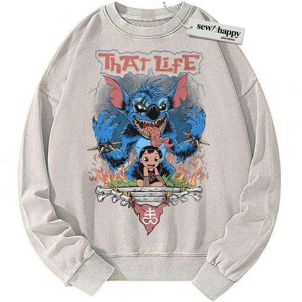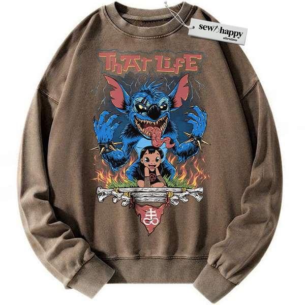 Wash Sweatshirt Lilo and Stitch Sweatshirt, Animated Sweatshirt, Vintage Sweatshirt