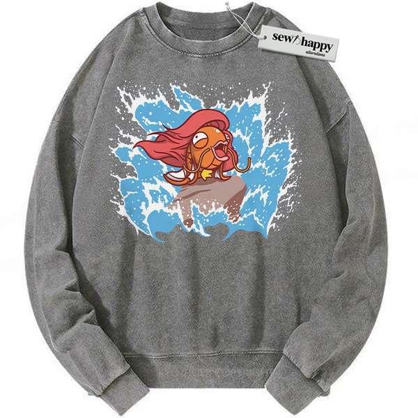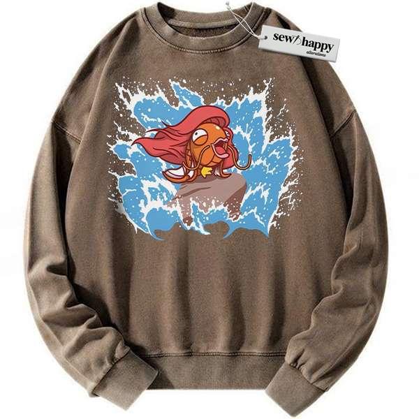 Wash Sweatshirt Magikarp x Ariel Sweatshirt, Pokemon Sweatshirt, Anime Sweatshirt, Vintage Sweater
