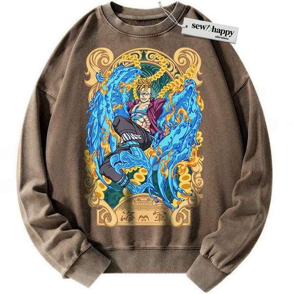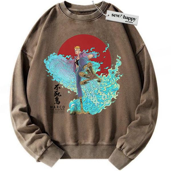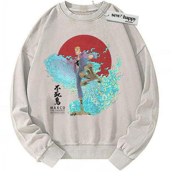 Wash Sweatshirt Marco Sweatshirt, One Piece Sweatshirt, Anime Sweatshirt, Vintage Sweatshirt