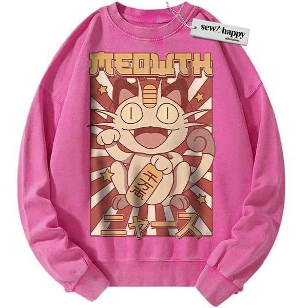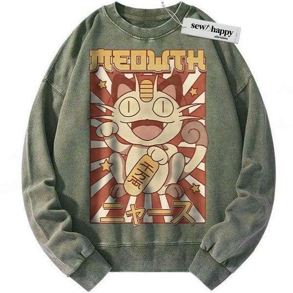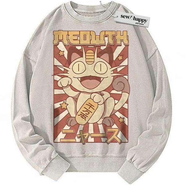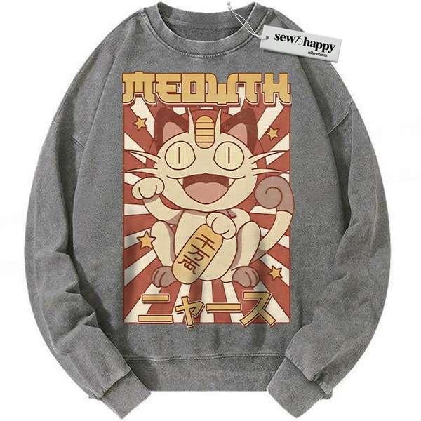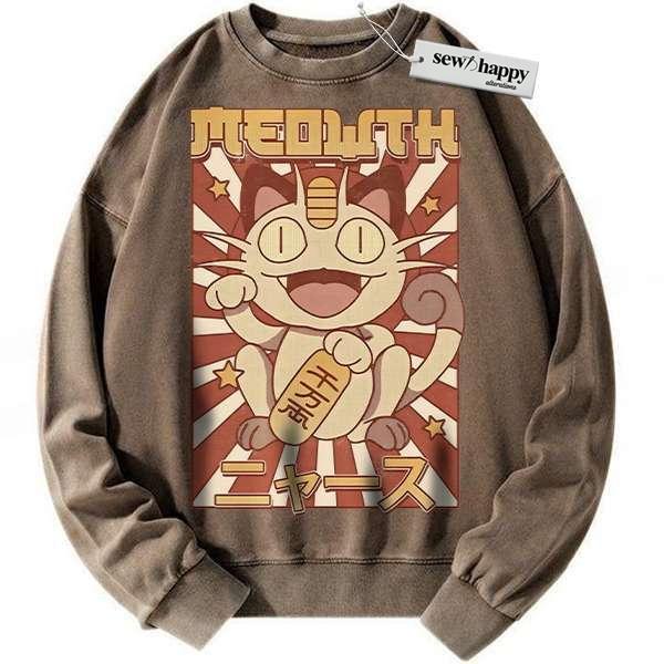 Wash Sweatshirt Meowth Sweatshirt, Pokemon Sweatshirt, PKM Sweatshirt, Anime Sweatshirt, Vintage Sweater
