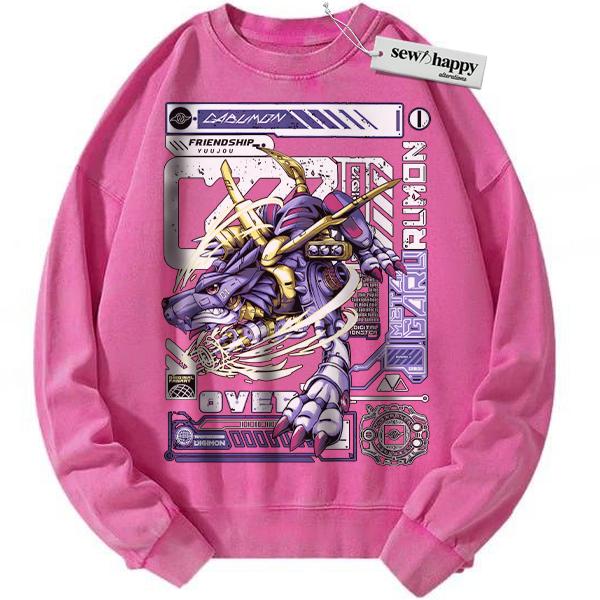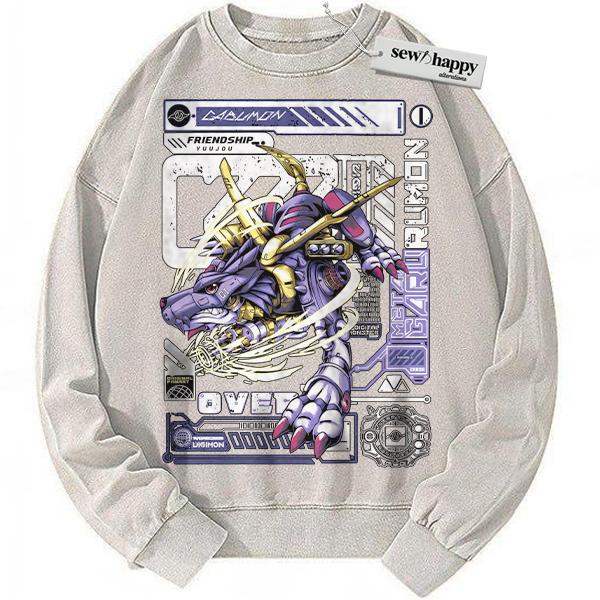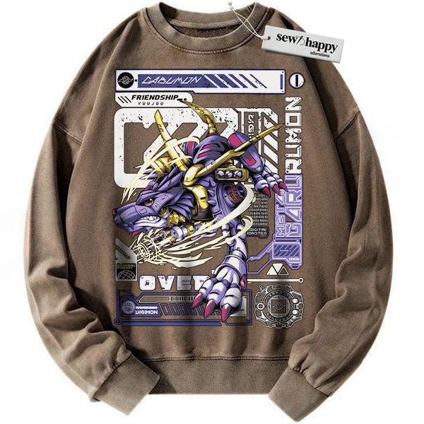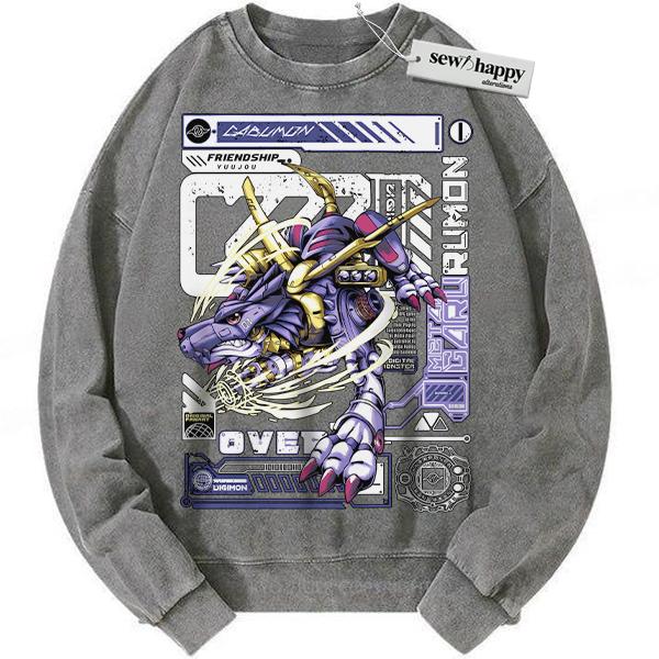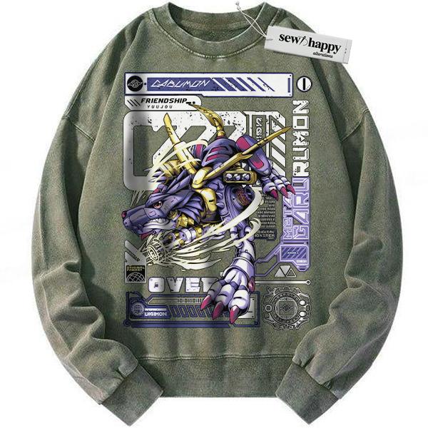 Wash Sweatshirt Metal Garurumon Sweatshirt, Digimon Sweatshirt, Anime Sweatshirt, Vintage Sweatshirt