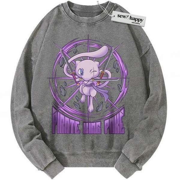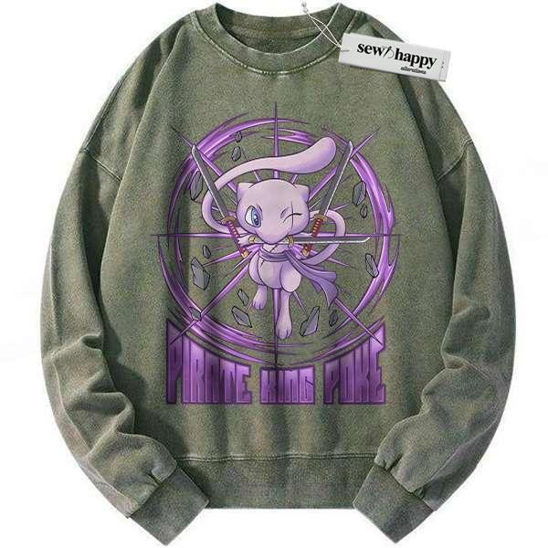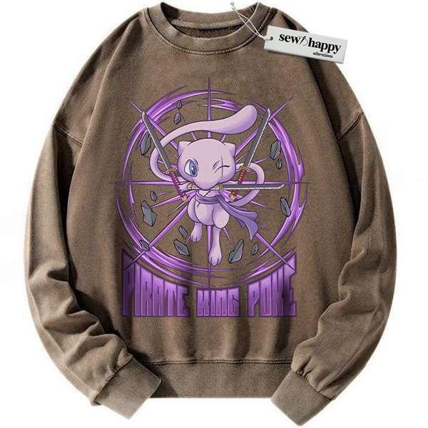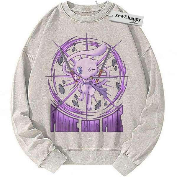 Wash Sweatshirt Mew x Zoro Sweatshirt, Pokemon Sweatshirt, Anime Sweatshirt, Vintage Sweatshirt