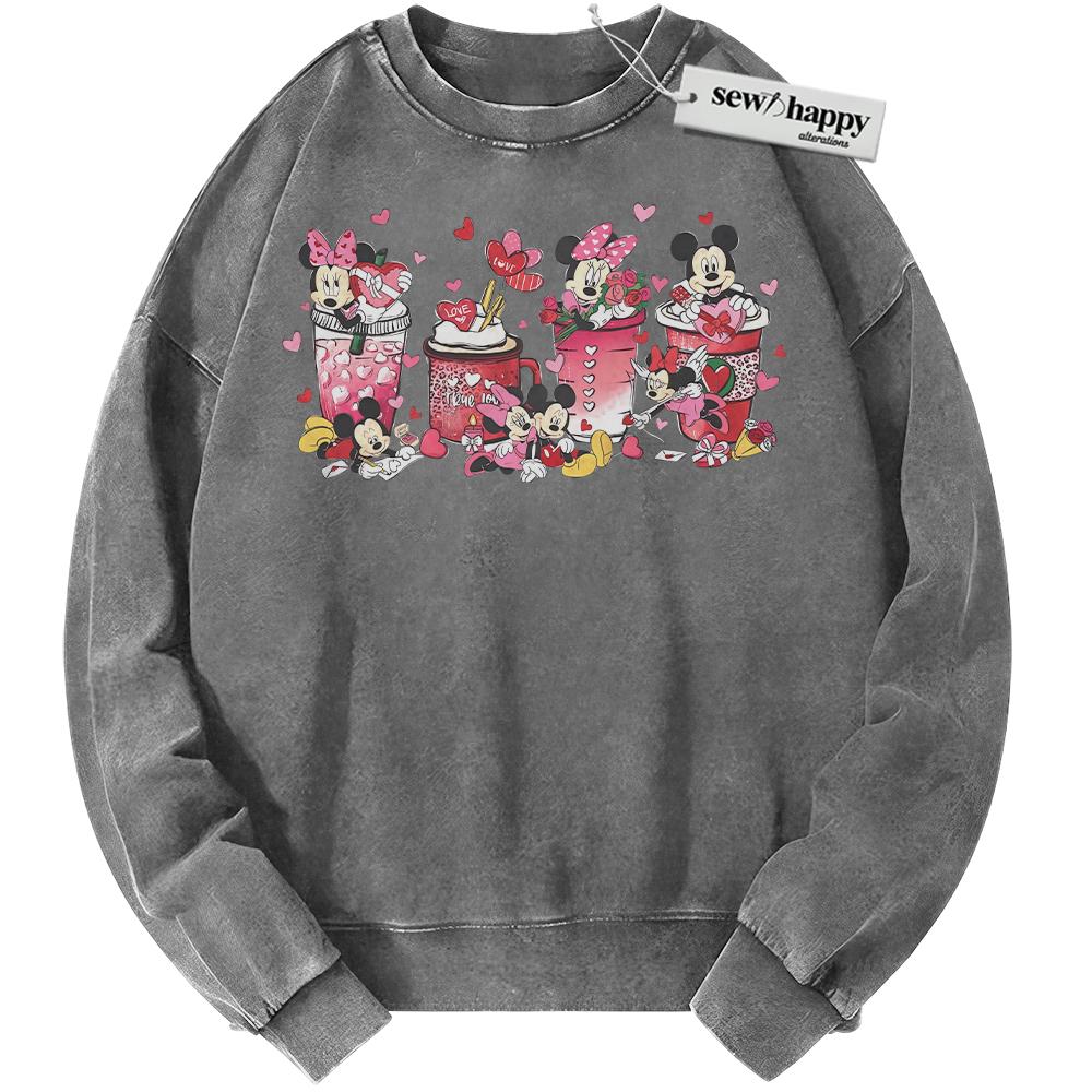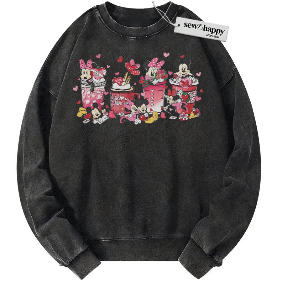 Wash Sweatshirt Mickey Mouse Sweatshirt, Valentine’s Day Sweatshirt, Animated Sweatshirt, Vintage Sweater