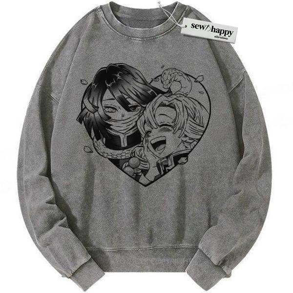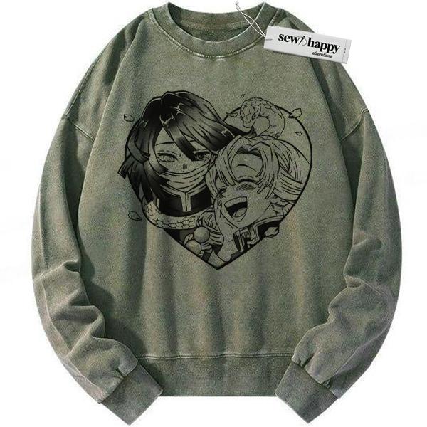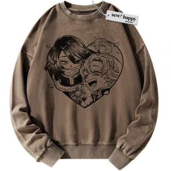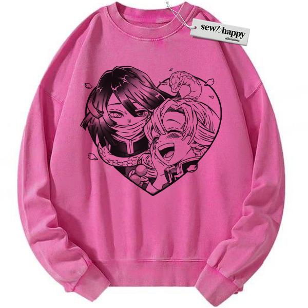Wash Sweatshirt Mitsuri Kanroji Sweatshirt, Obanai Iguro Sweatshirt, Demon Slayer Sweatshirt, Anime Sweatshirt, Vintage Sweatshirt