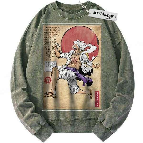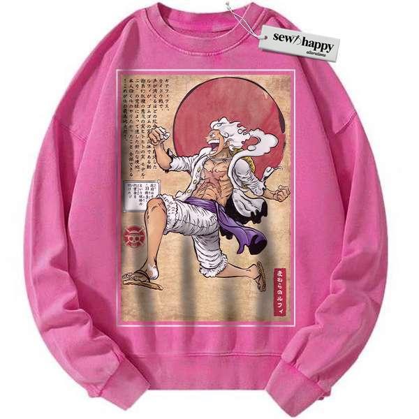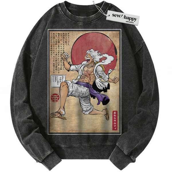 Wash Sweatshirt Monkey D Luffy Sweatshirt, Luffy Gear 5 Sweatshirt, One Piece Sweatshirt, Anime Sweatshirt, Vintage Sweater