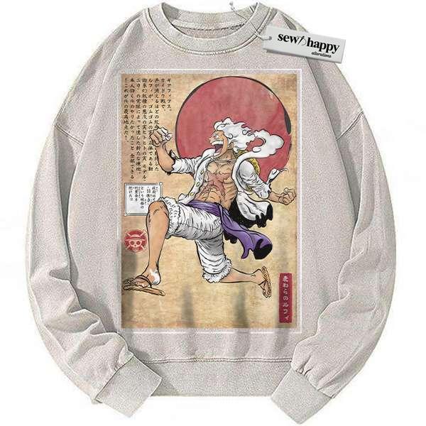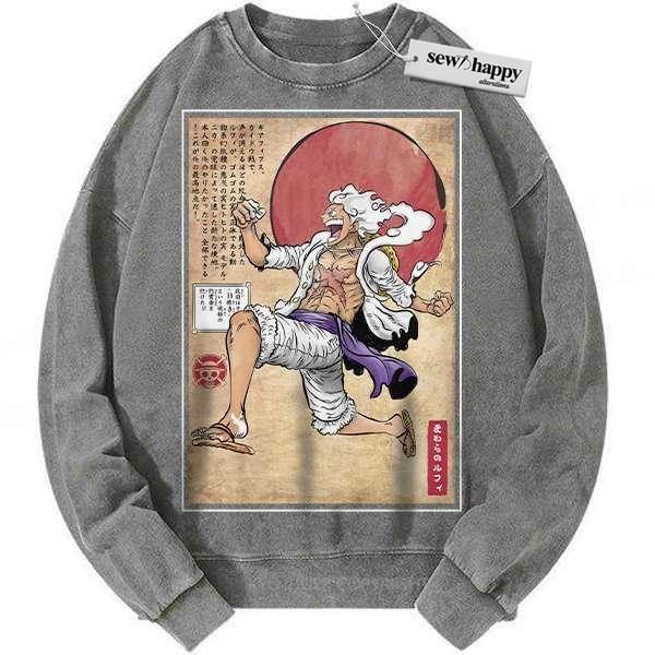 Wash Sweatshirt Monkey D Luffy Sweatshirt, Luffy Gear 5 Sweatshirt, One Piece Sweatshirt, Anime Sweatshirt, Vintage Sweater