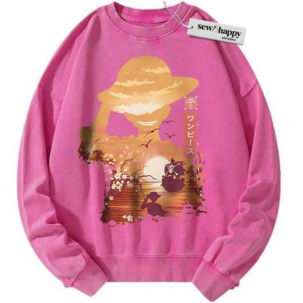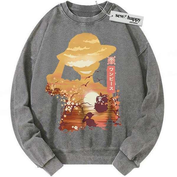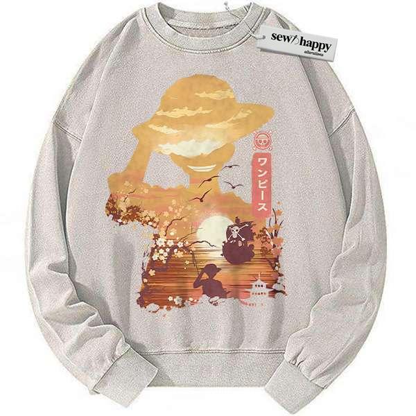 Wash Sweatshirt Monkey D Luffy Sweatshirt, One Piece Sweatshirt, Anime Sweatshirt, Vintage Sweater