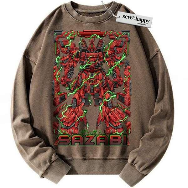 Wash Sweatshirt MSN-04 Sazabi Sweatshirt, The Gundam Sweatshirt, Anime Sweatshirt, Vintage Sweatshirt