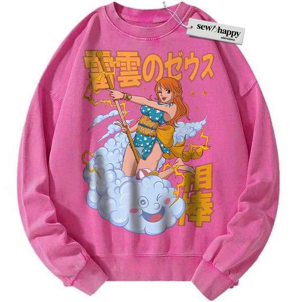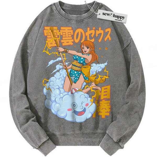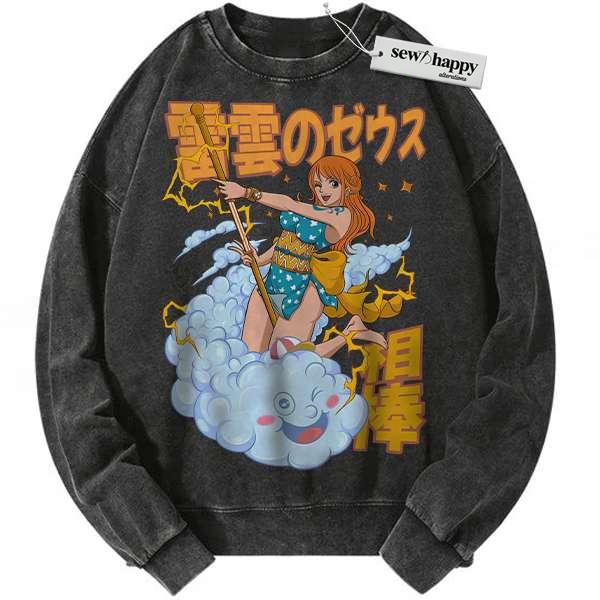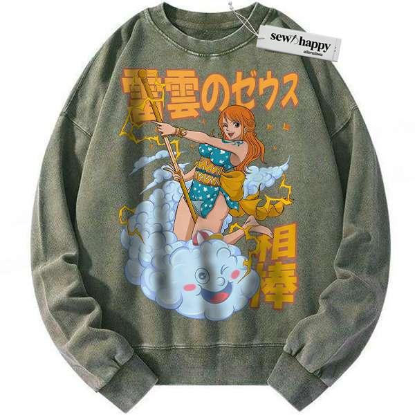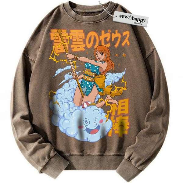 Wash Sweatshirt Nami Sweatshirt, One Piece Sweatshirt, Anime Sweatshirt, Vintage Sweater