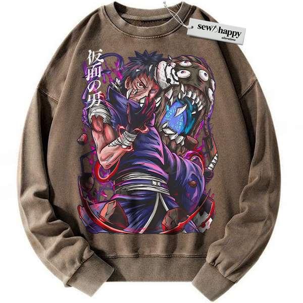 Wash Sweatshirt Obito Uchiha Sweatshirt, Naruto Sweatshirt, Anime Sweatshirt, Vintage Sweatshirt