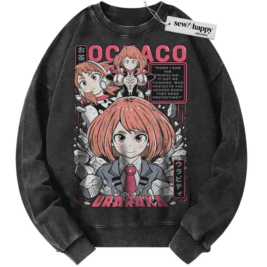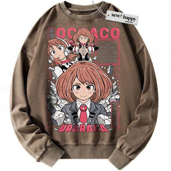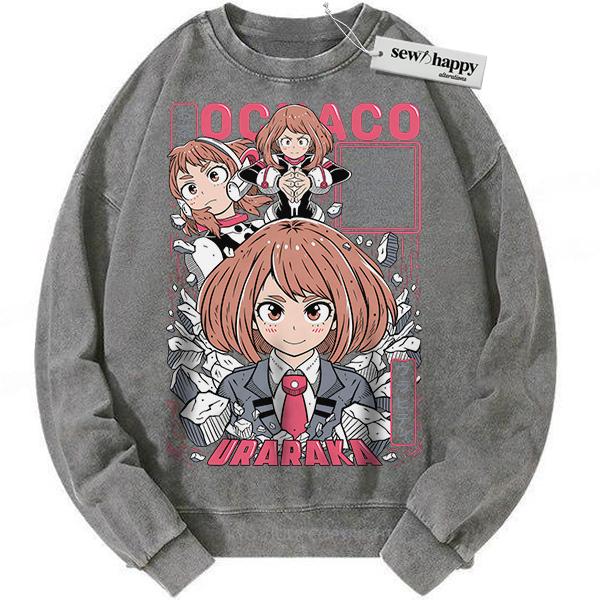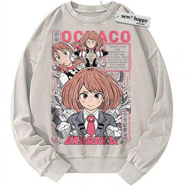Wash Sweatshirt Ochaco Uraraka Sweatshirt, MHA Sweatshirt, Anime Sweatshirt, Vintage Sweater