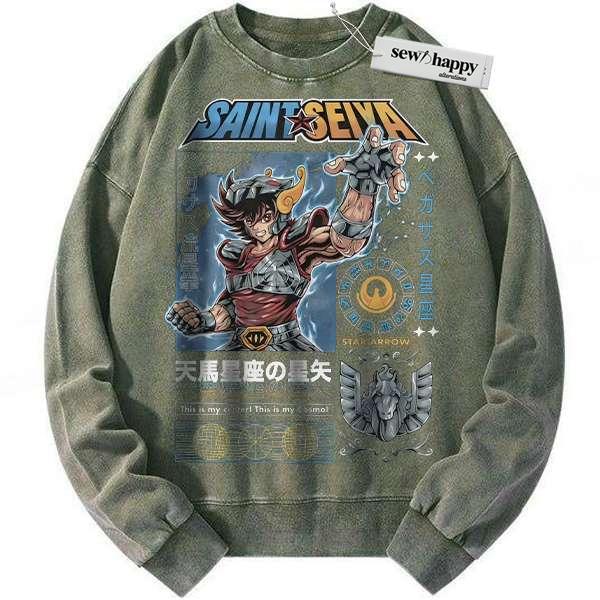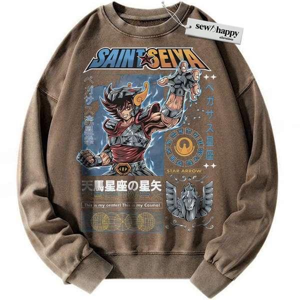 Wash Sweatshirt Pegasus Seiya Sweatshirt, Saint Seiya Sweatshirt, Anime Sweatshirt, Vintage Sweater