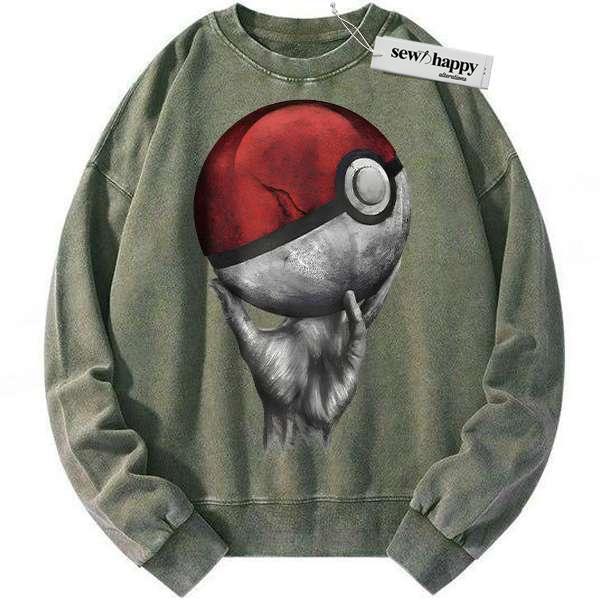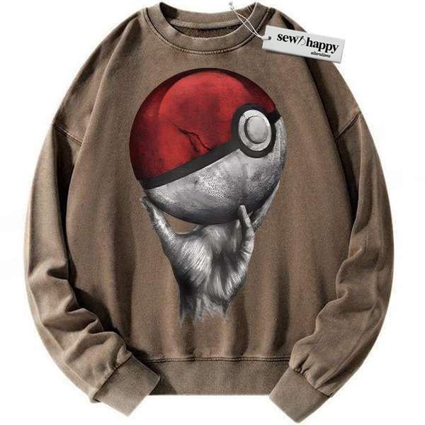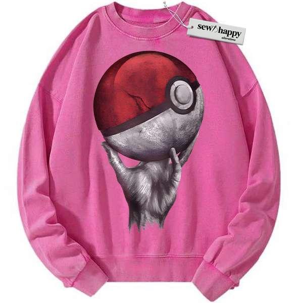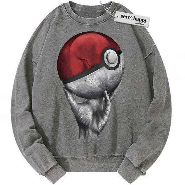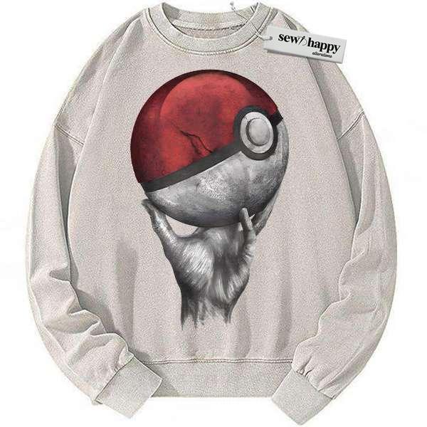 Wash Sweatshirt Poke Ball Sweatshirt, Pokemon Sweatshirt, Anime Sweatshirt, Vintage Sweater