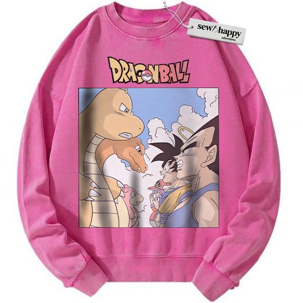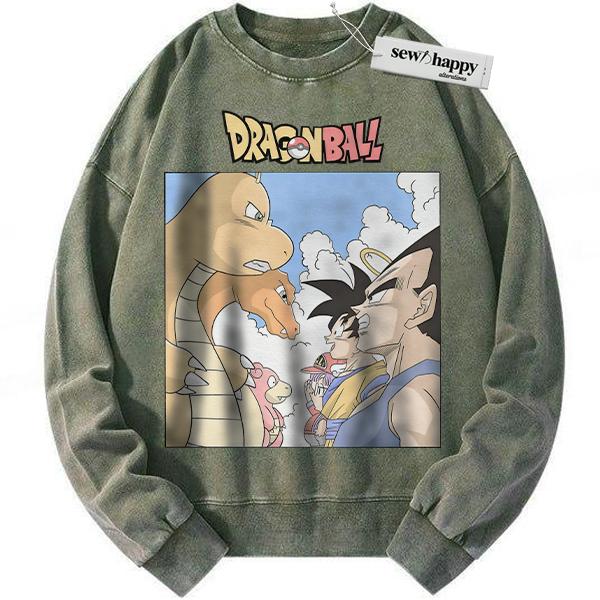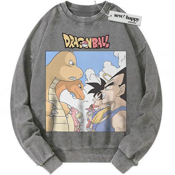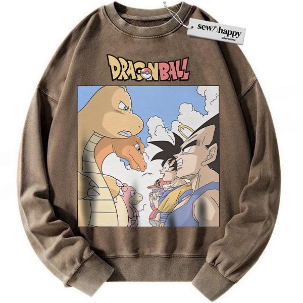 Wash Sweatshirt Pokemon x Dragon Ball Sweatshirt, Anime Sweatshirt, Vintage Sweater