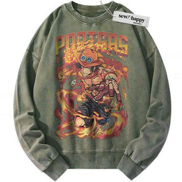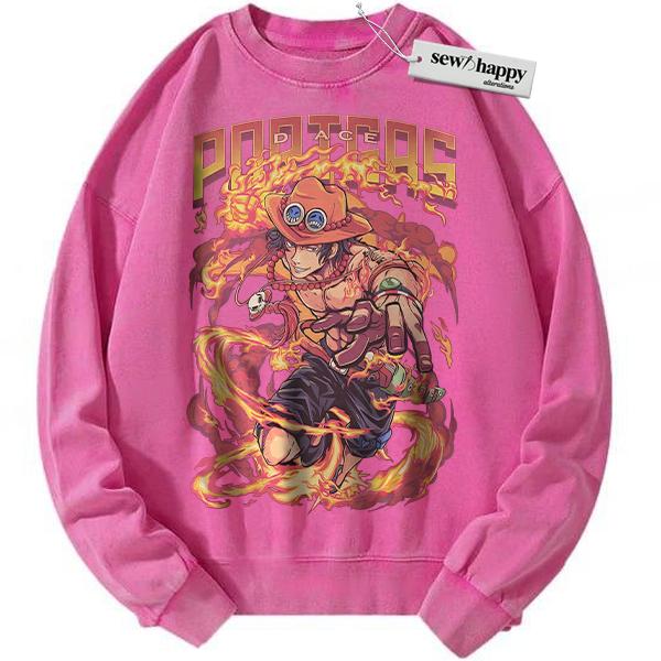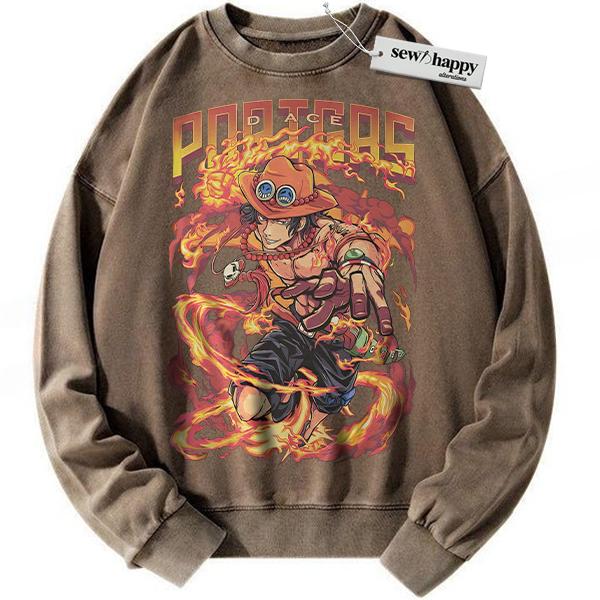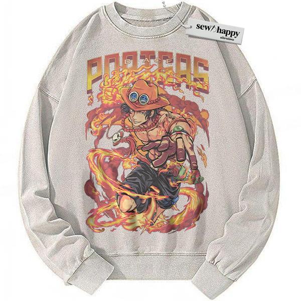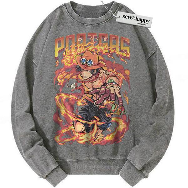 Wash Sweatshirt Portgas D Ace Sweatshirt, One Piece Sweatshirt, Anime Sweatshirt, Vintage Sweatshirt