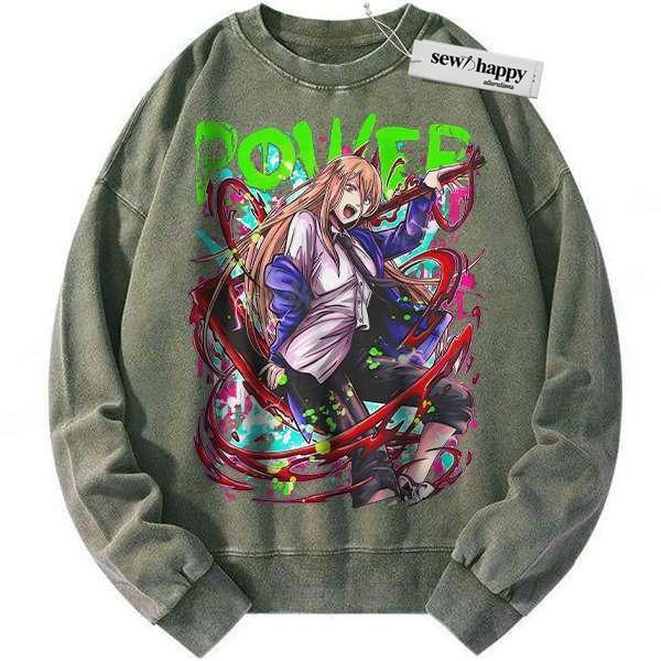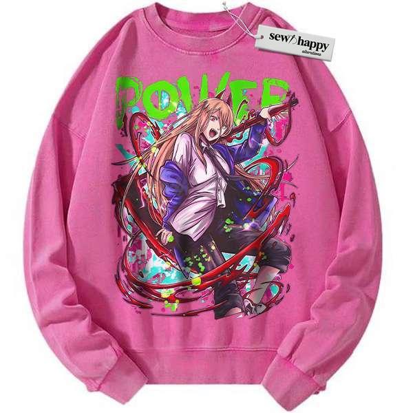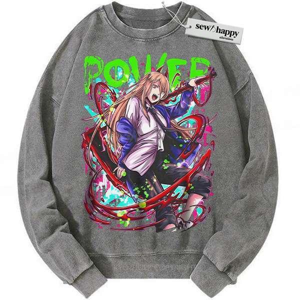 Wash Sweatshirt Power Sweatshirt, Chainsaw Man Sweatshirt, Anime Sweatshirt, Vintage Sweatshirt