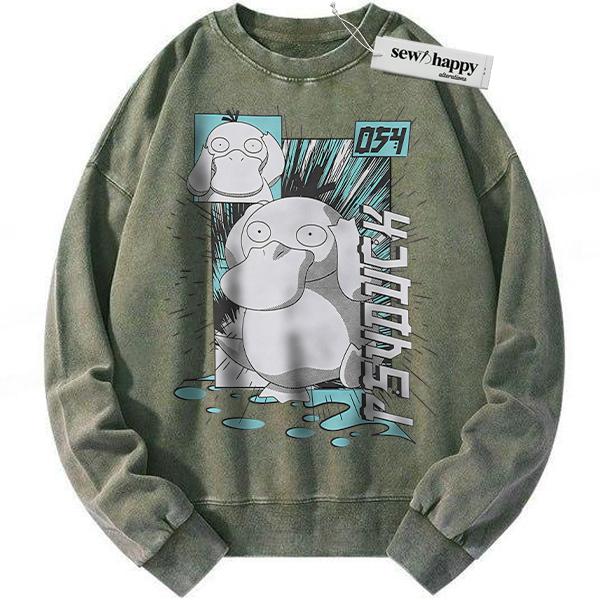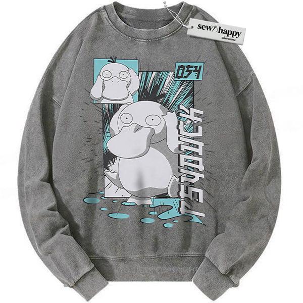 Wash Sweatshirt Psyduck Sweatshirt, Anime Sweatshirt, Vintage Sweatshirt