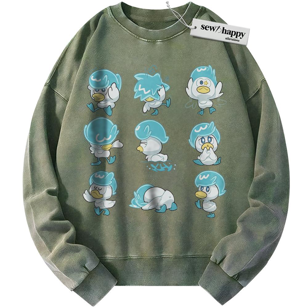 Wash Sweatshirt Quaxly Sweatshirt, Pokemon Sweatshirt, PKM Sweatshirt, Anime Sweatshirt, Vintage Sweater