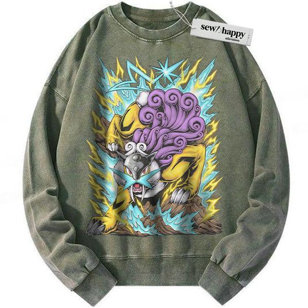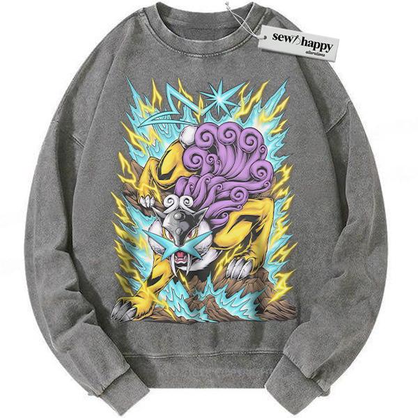 Wash Sweatshirt Raikou Sweatshirt, Anime Sweatshirt, Vintage Sweatshirt