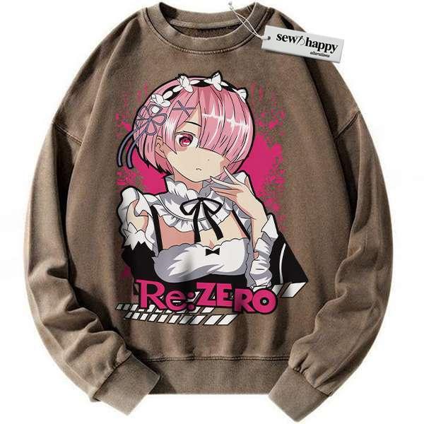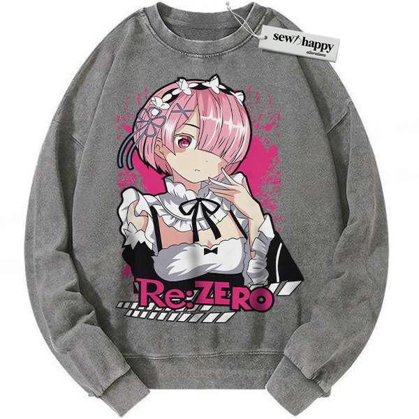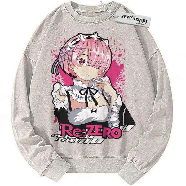 Wash Sweatshirt Ram Sweatshirt, Re:Zero Sweatshirt, Anime Sweatshirt, Vintage Sweatshirt