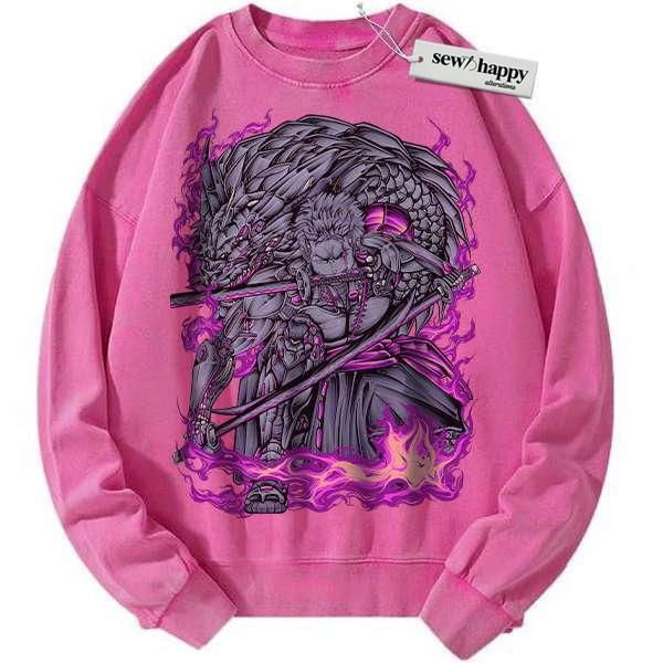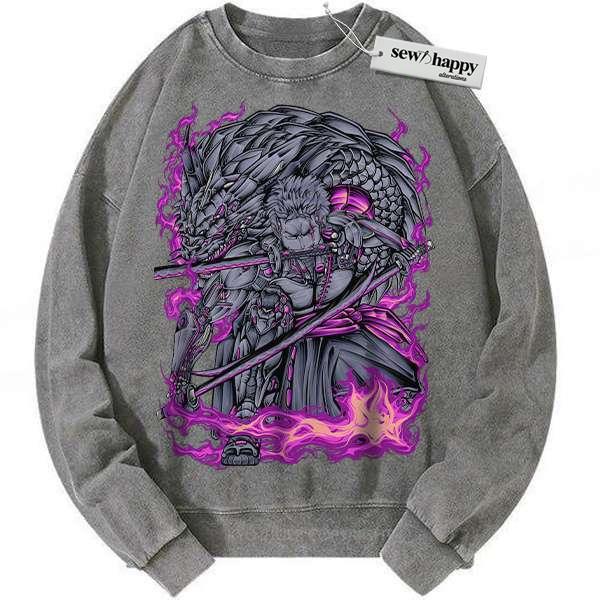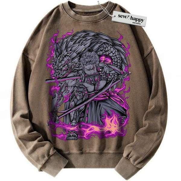 Wash Sweatshirt Roronoa Zoro Sweatshirt, One Piece Sweatshirt, Anime Sweatshirt, Vintage Sweater