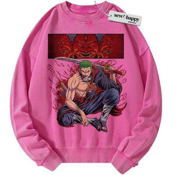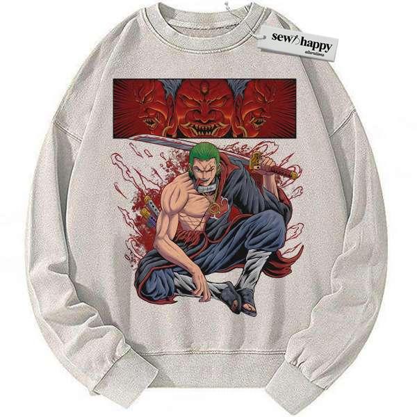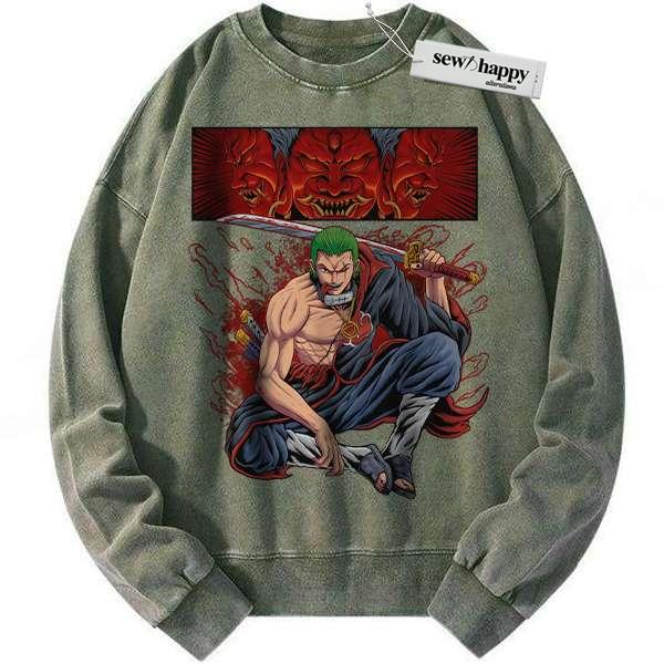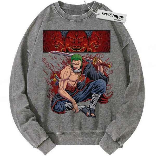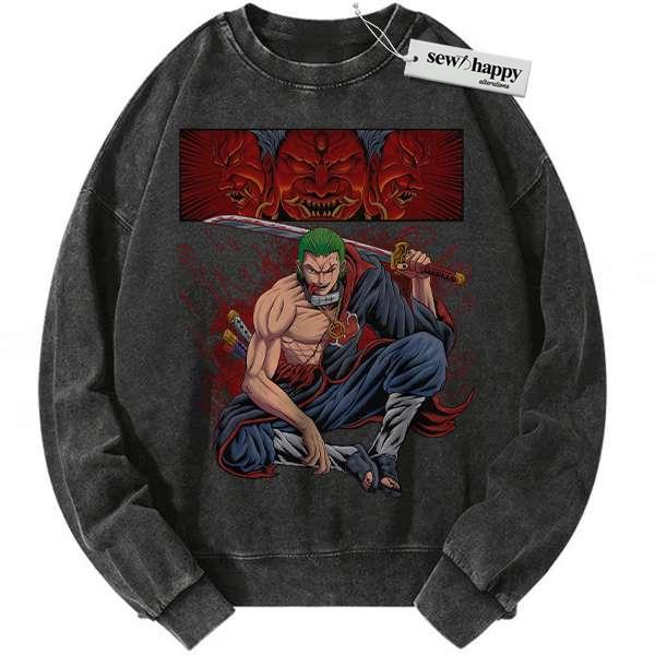 Wash Sweatshirt Roronoa Zoro x Akatsuki Sweatshirt, One Piece Sweatshirt, Anime Sweatshirt, Vintage Sweater