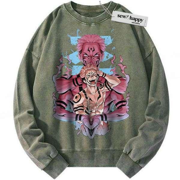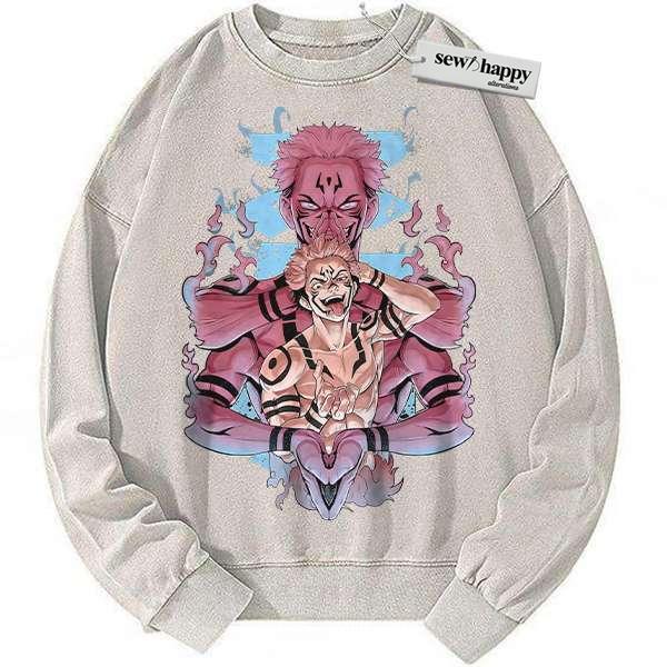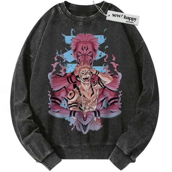 Wash Sweatshirt Ryomen Sukuna Sweatshirt, Jujutsu Kaisen Sweatshirt, Anime Sweatshirt, Vintage Sweater