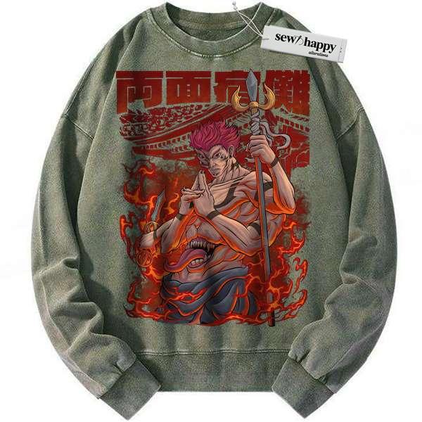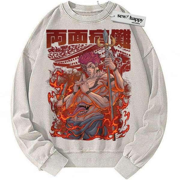 Wash Sweatshirt Ryomen Sukuna Sweatshirt, Jujutsu Kaisen Sweatshirt, Anime Sweatshirt, Vintage Sweatshirt