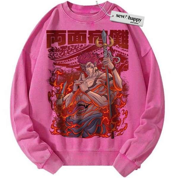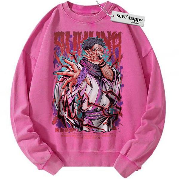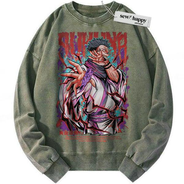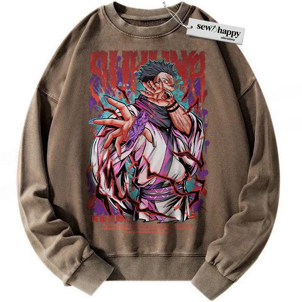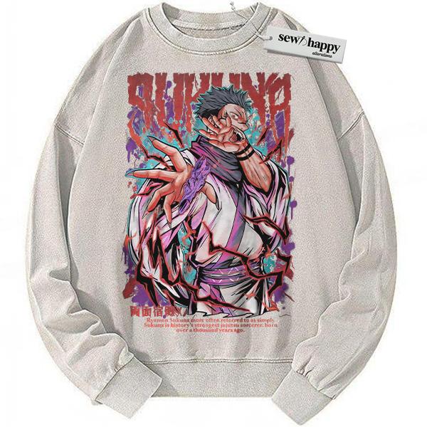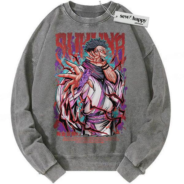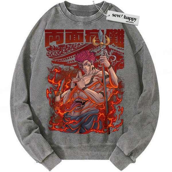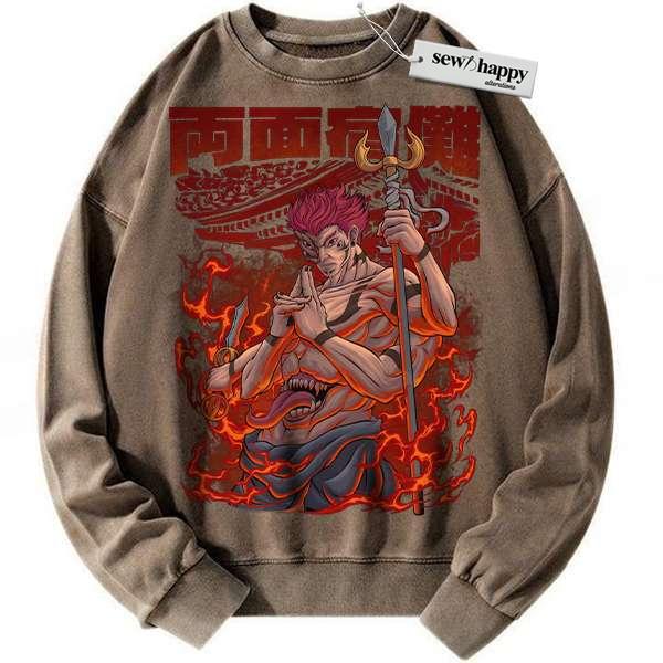 Wash Sweatshirt Ryomen Sukuna Sweatshirt, Jujutsu Kaisen Sweatshirt, Anime Sweatshirt, Vintage Sweatshirt
