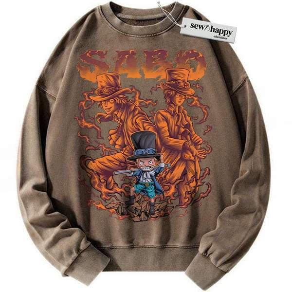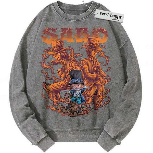 Wash Sweatshirt Sabo Sweatshirt, One Piece Sweatshirt, Anime Sweatshirt, Vintage Sweatshirt