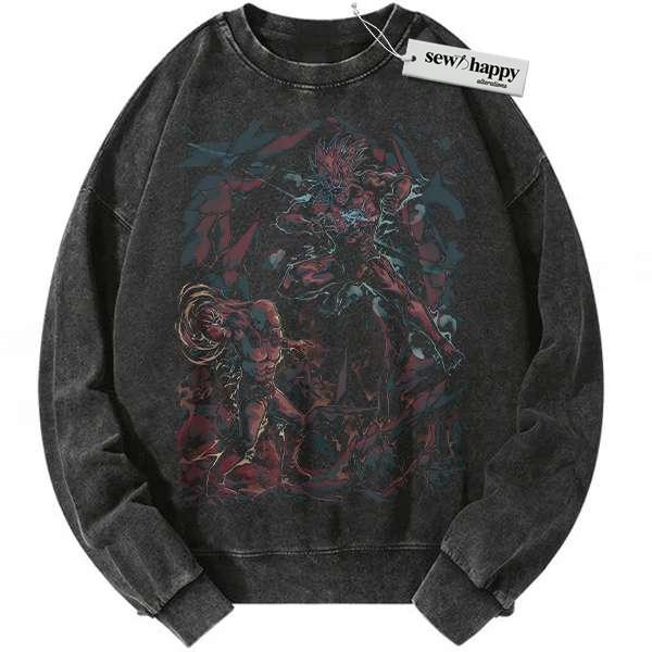 Wash Sweatshirt Saitama vs Boros Sweatshirt, One Punch Man Sweatshirt, Anime Sweatshirt, Vintage Sweatshirt