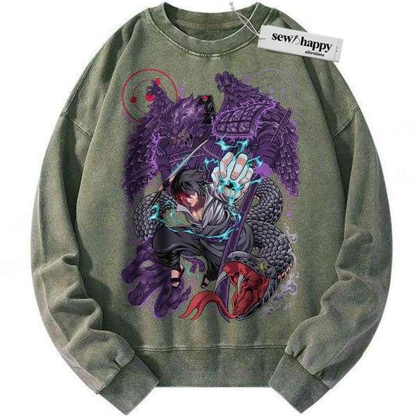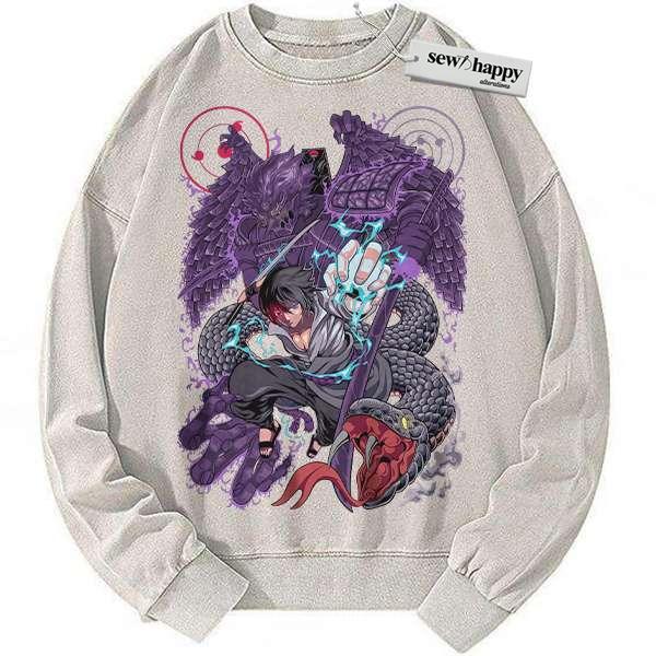 Wash Sweatshirt Sasuke Uchiha Sweatshirt, Naruto Sweatshirt, Anime Sweatshirt, Vintage Sweater